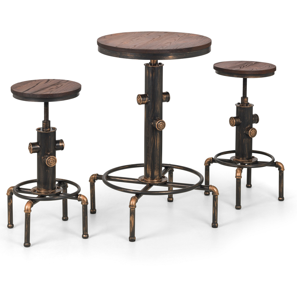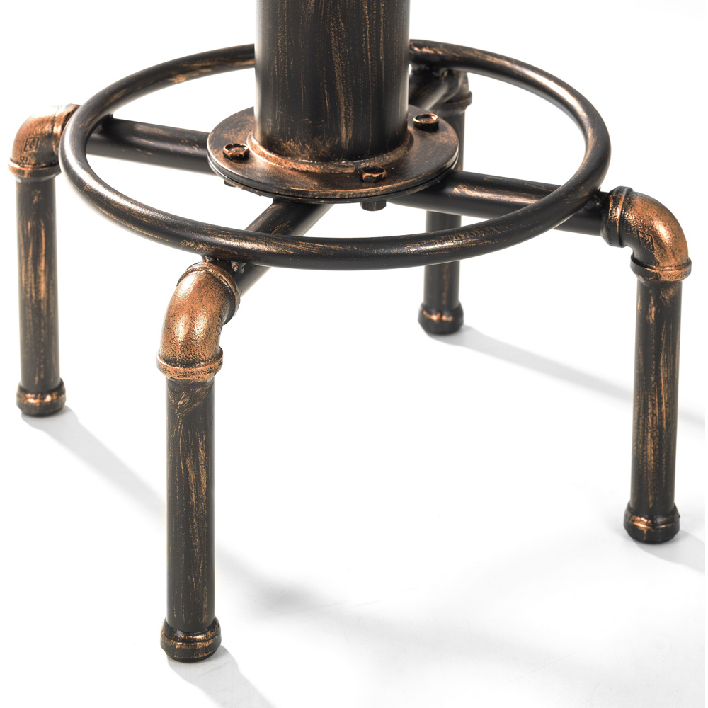 Add a touch of industrial vintage style to your home with the Rockport bar stool. Its brushed copper effect finish and rustic elm round seat create a unique look. The eye-catching fire hydrant design, complete with realistic water valves and four pipe-style legs, is complemented by a circular footrest for added comfort. Easily adjust the height and swivel 360 degrees for ultimate convenience. This bar stool is both stylish and durable, offering both comfort and practicality.