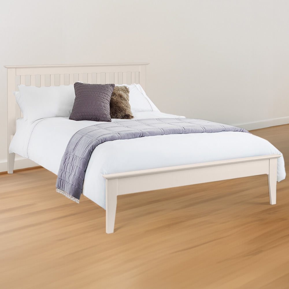 Add a touch of timeless elegance to your bedroom with the Salerno King Ivory Shaker Bed. This stunning bed, crafted from solid white oak and finished in a durable ivory lacquer, boasts refined detailing for a sophisticated look. The sprung slatted base provides added comfort and extends the mattress life. Simple self-assembly is required. This piece is a true statement for any bedroom.