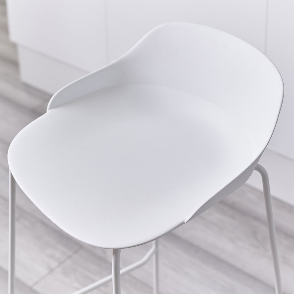 Add a touch of contemporary chic to your space with the Julian Bowen Rocco White Stool, a set of two. The elegant white curved seat and sleek metal legs combine for a stylish look. Its low-back design offers comfortable support. This item is delivered direct to you from one of our suppliers, please see our Terms & Conditions for details. Please note we are unable to deliver this item to the following postcodes: BT, HS, IV41-56, KA27-28, KW15-17, PA39-80, PH41-44, TR21-25.