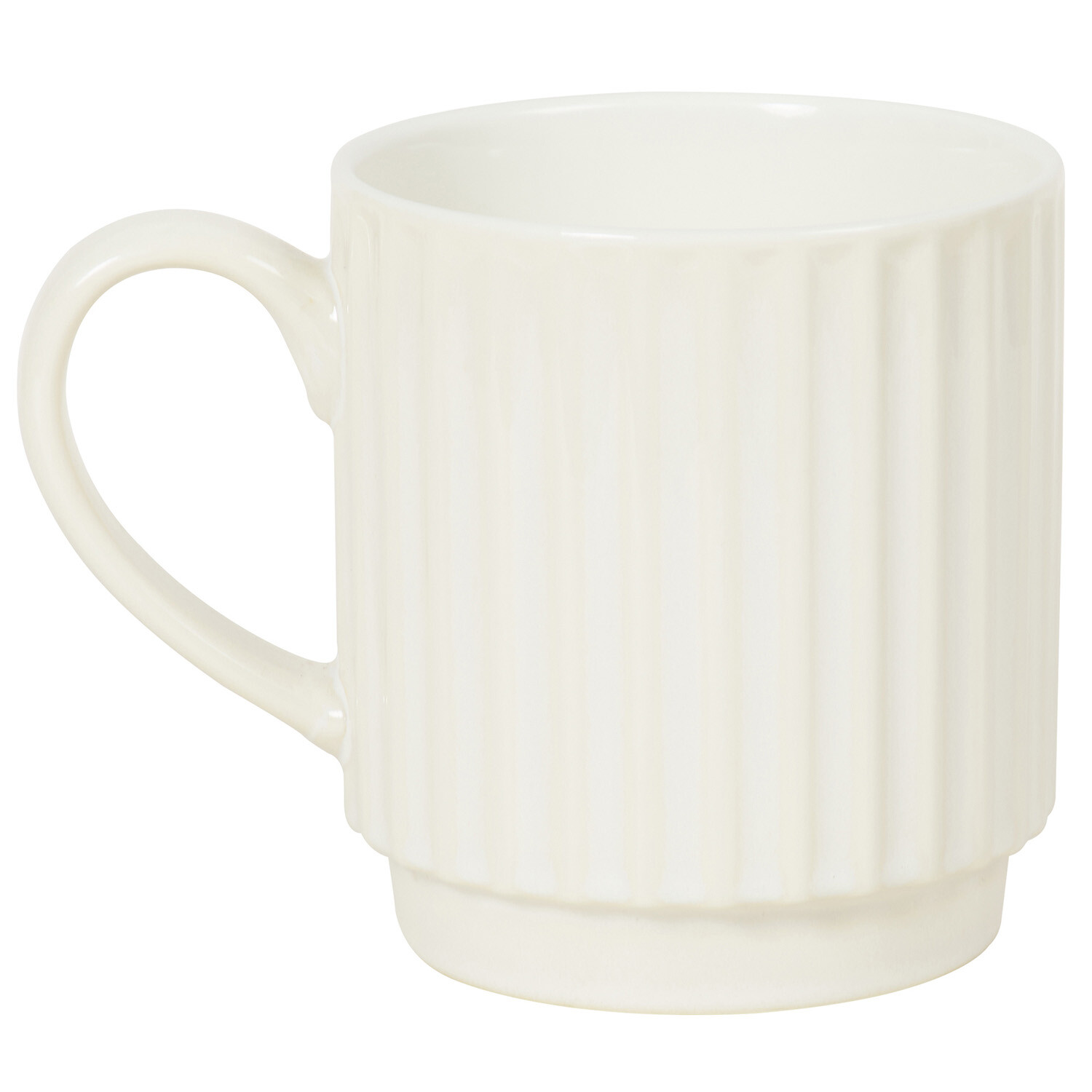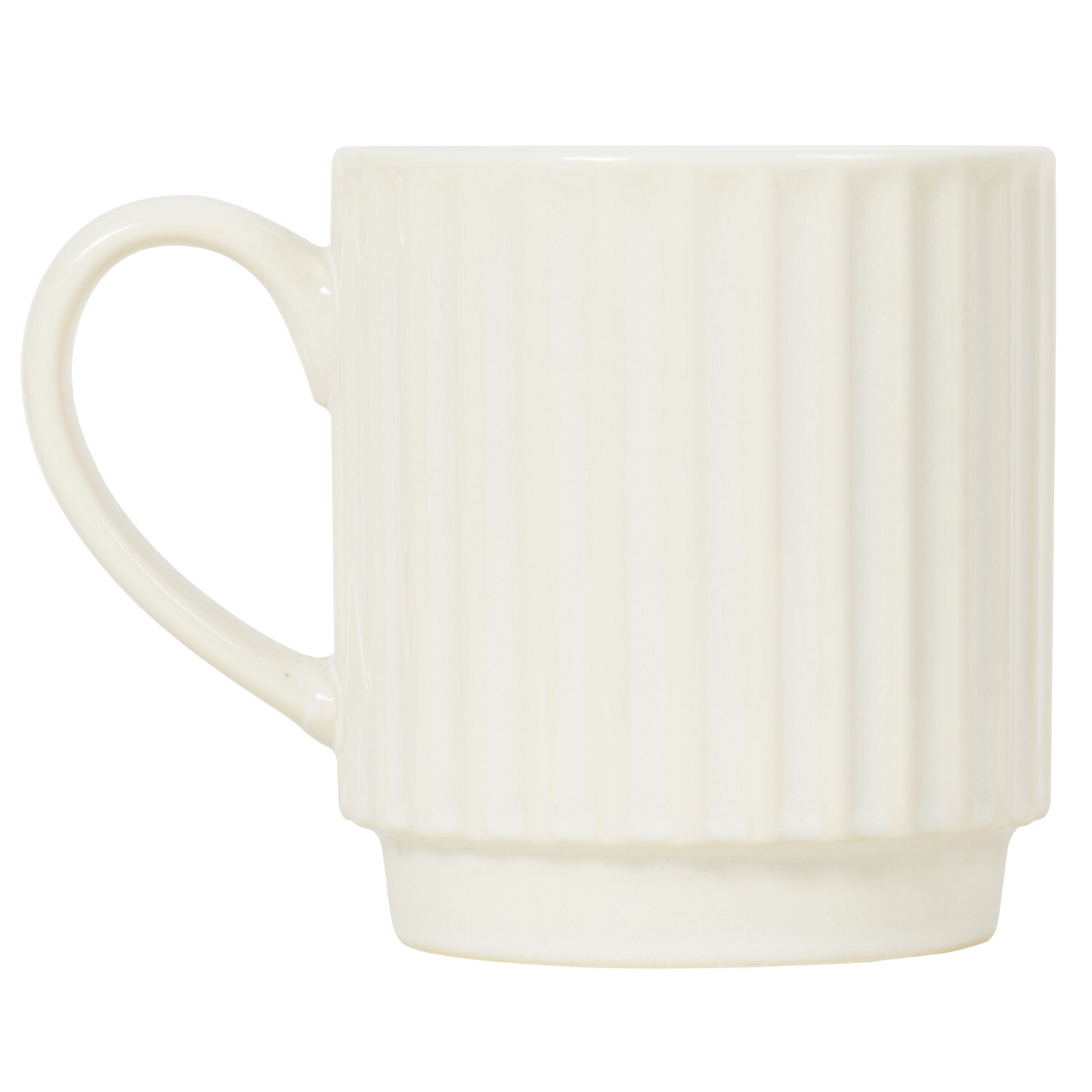 A stylish and contemporary collection for any kitchen, this Set of four Jumbo Ribbed Stackable Mugs offers a large capacity for your daily brew of tea or coffee. Their simple ribbed design and shaped base allow for convenient stacking, maximizing space in cupboards or on countertops. Finished in a modern cream tone, these mugs effortlessly complement existing home décor.