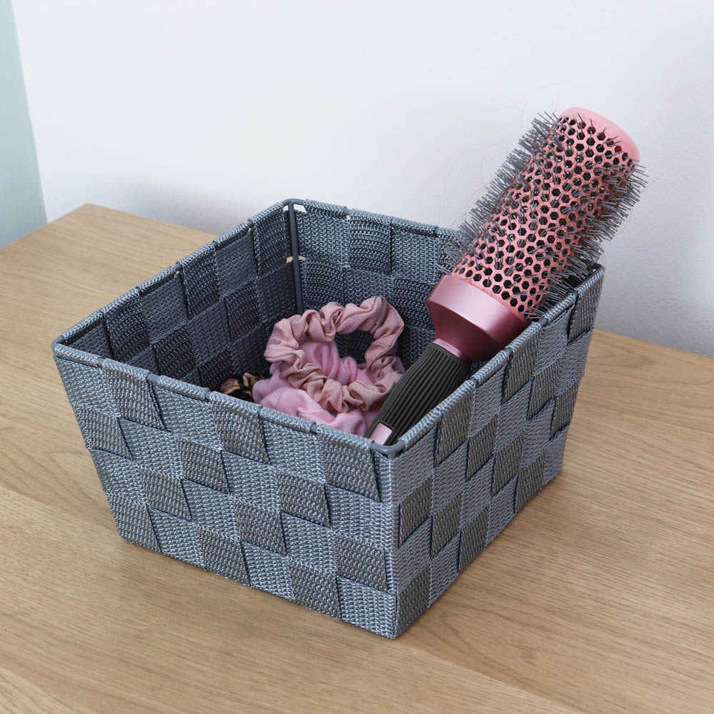 Elevate your home organisation with the JVL 3L Vichy Square Nylon Storage Basket, a perfect blend of style and functionality. Crafted from a robust yet lightweight fabric in a sophisticated steel grey hue, this basket serves as a chic accent that harmonizes with a variety of vibrant decor. Its tapered design makes it an ideal choice for storing small garments, jewellery, makeup, baby accessories, and more, ensuring that your space remains tidy and visually appealing. This versatile open storage basket is perfect for use throughout your home, whether in the bedroom, living room, playroom, utility room, or children's rooms. Use it to declutter and organise items like toiletries and stationery, or keep your socks neatly arranged in drawers. With approximate dimensions of H11 x W19 x D19 cm and a base size of W16 x D16 cm, this basket offers a capacity of approximately 3L, making it a practical solution for all your storage needs. Embrace a stylish approach to organisation with this elegant storage accessory.