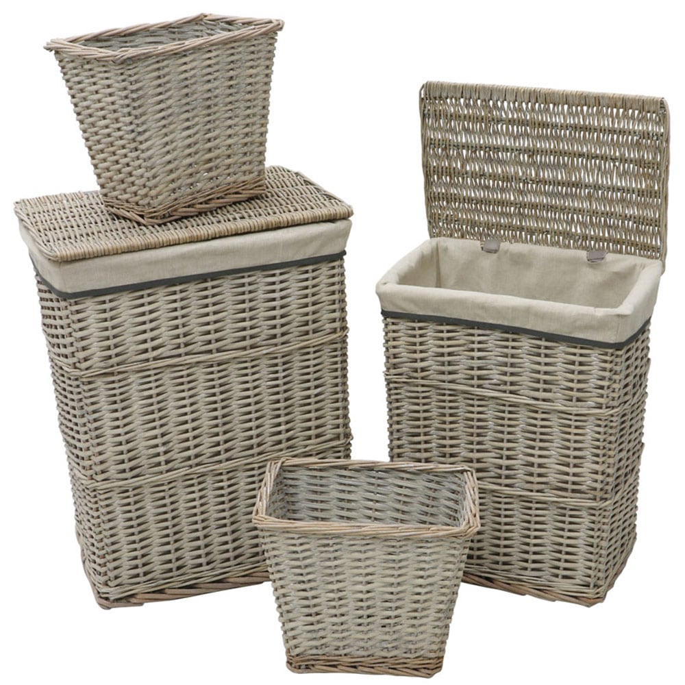 JVL 4 Piece Arianna Grey Rectangular Willow Laundry and Waste Paper Basket Set