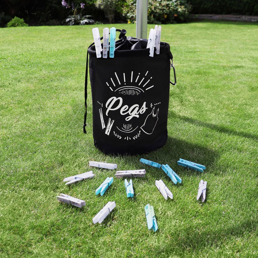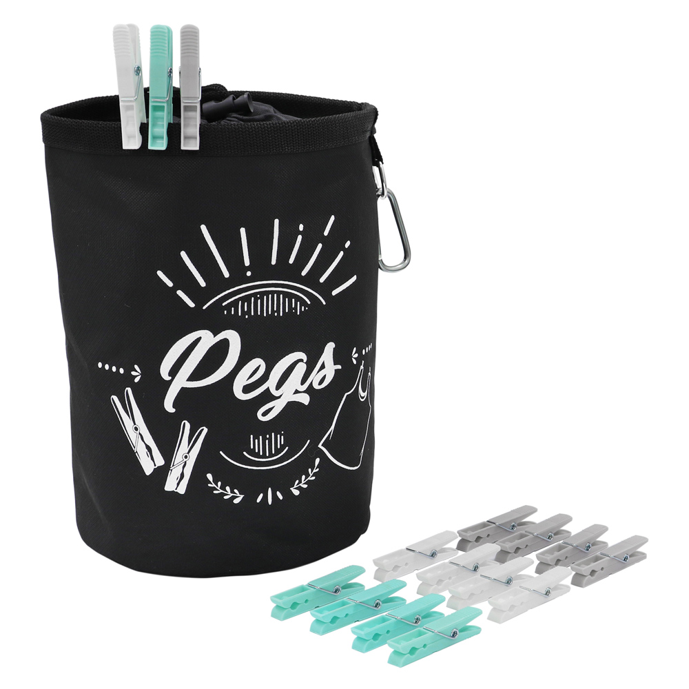 Upgrade your laundry routine with this 200-pack of assorted plastic pegs and their handy storage bag. These durable pegs, featuring rust-resistant coil springs for a secure grip, come in a mix of grey, white, and aqua. The generously sized bag holds up to 300 pegs (200 included!), and features a convenient drawstring closure to keep your pegs clean and organized. Attach the clip/hook to your rotary airer, washing line, indoor airer, or even a trouser belt loop for easy access. Each peg's grooved design ensures a superior grip on your clothes.