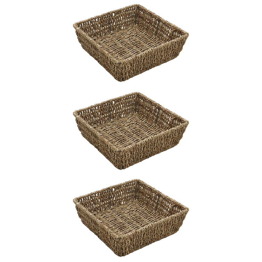 Upgrade your home with the JVL Seagrass Square Storage Tray Set of 3. Made from sustainable seagrass, these durable trays add a touch of natural style to any room. Perfect for bathrooms, bedrooms, or offices, they offer ample storage in a stylish package. Their versatile design works as both decorative display and practical storage solution. Each tray measures H8 x W25 x D25cm, providing generous space for your belongings.