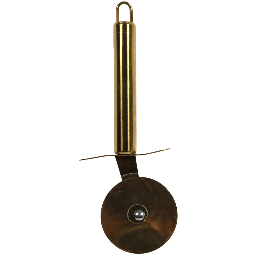 Effortlessly slice through pizza, pastry, and more with this stylish Metal Pizza Wheel. Its durable steel blade ensures clean cuts every time, making meal prep a breeze. Conveniently store it away thanks to the integrated hanging hole in the handle – a space-saving design for any kitchen.