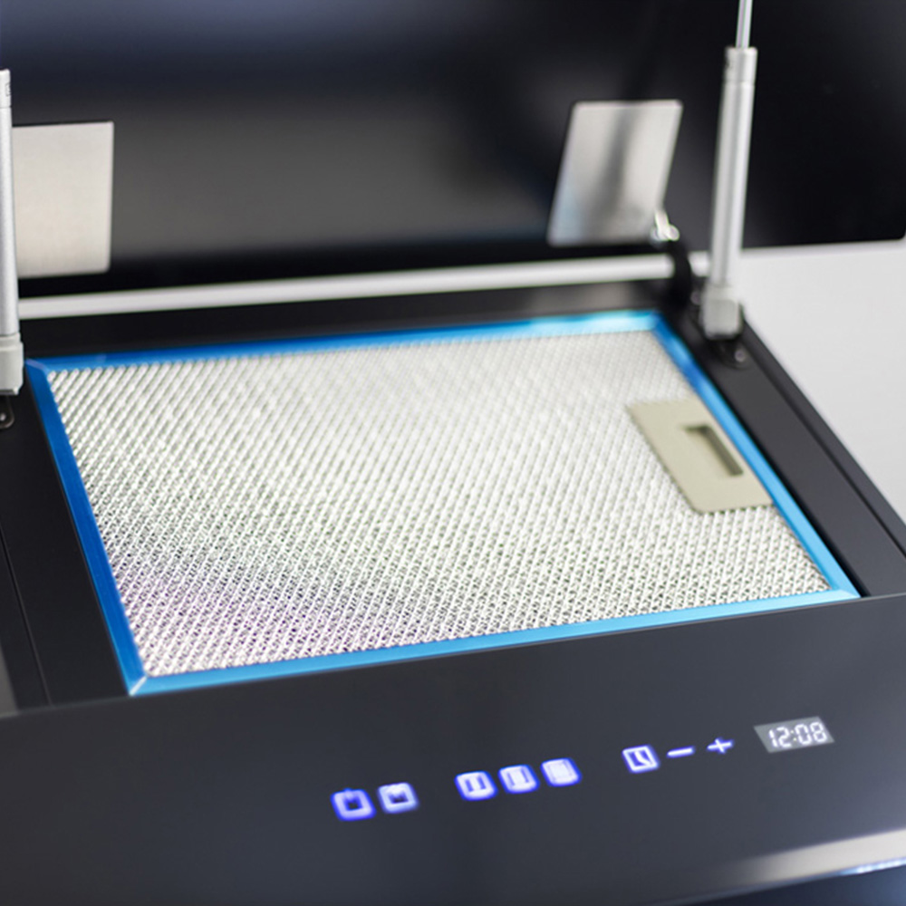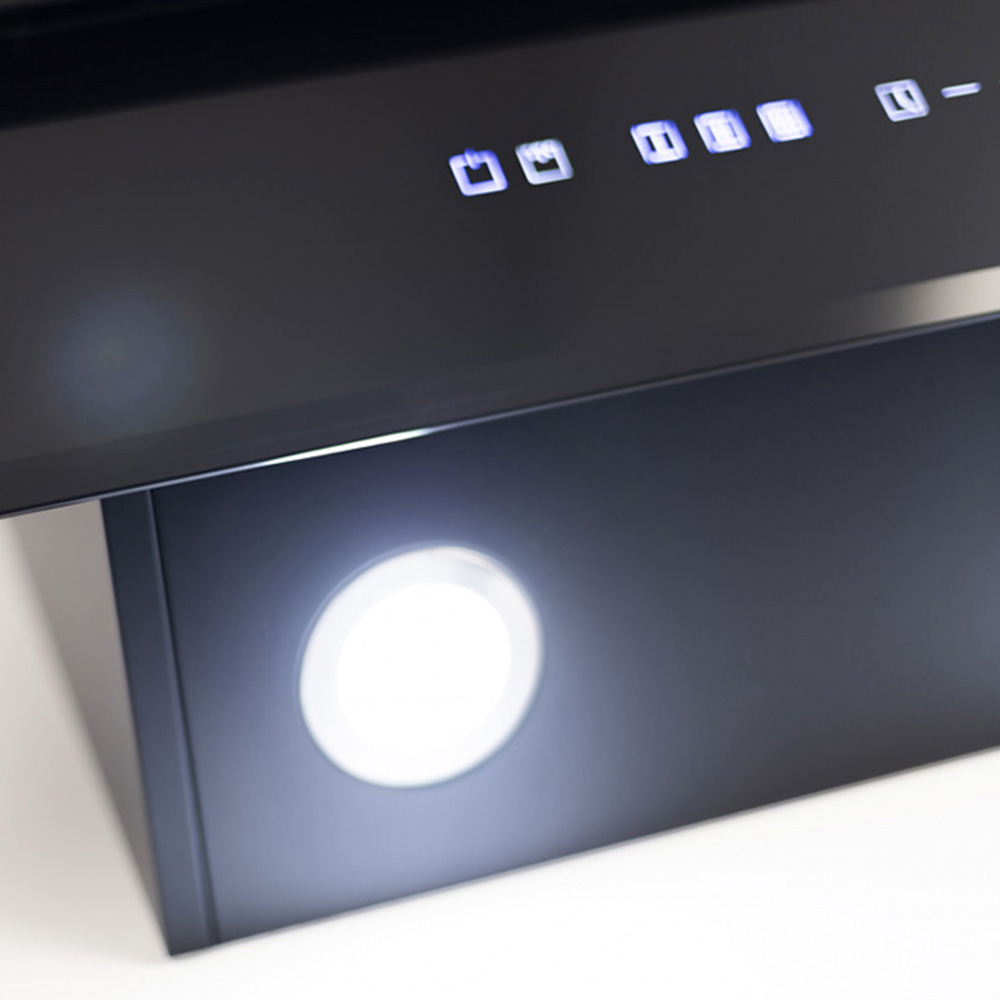 A stylish addition to any contemporary kitchen, this 70cm wall-mounted cooker hood features a sleek black glass finish. User-friendly touch controls allow effortless operation, with a choice of three fan speeds and illuminating LED lighting. Designed for both external venting and internal filtration, it efficiently eliminates steam and odours. The smooth glass surface ensures swift and simple cleaning, while the powerful extraction helps to maintain a fresh and clean atmosphere as you cook.