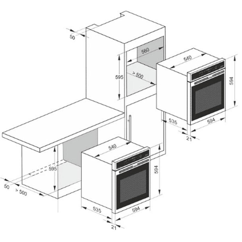 This 60cm electric oven delivers both style and substance to your kitchen, boasting a sleek black glass and steel finish. With a generous 79L capacity, it's well-equipped to handle anything from quick weeknight dinners to elaborate Sunday roasts. Fan-assisted cooking ensures even results, while the infrared grill adds that perfect finishing touch. A built-in food probe helps you achieve perfectly cooked meats, and the defrost setting offers added convenience. The pyrolytic self-cleaning function is a game-changer, heating the oven to 400°C to incinerate grease and grime, eliminating the need for manual scrubbing. Finished with user-friendly touch controls and a digital timer, this oven makes cooking a pleasure every day.