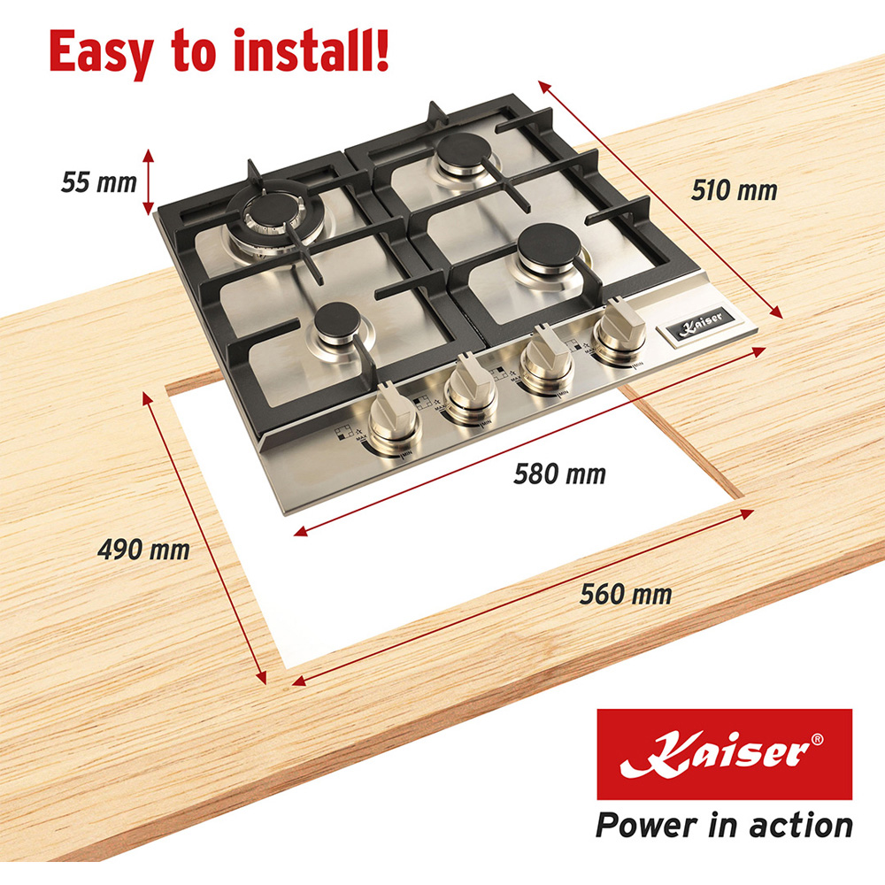 Kaiser Avantgarde Pro Stainless Steel Gas Hob 58cm