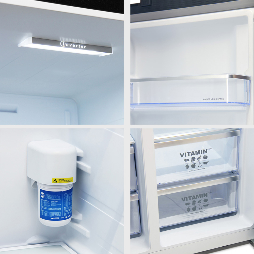 Kaiser Avantgarde Stainless Steel Pro Plumbed Black Fridge Freezer 556L