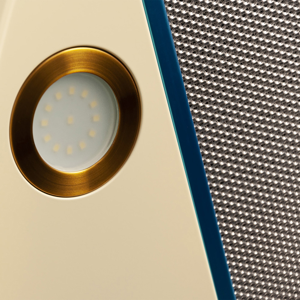 Bring vintage elegance to your kitchen with this wall-mounted cooker hood, finished in Classical Ivory. Antique gold detailing and a smart, leather-covered handle combine style with practicality. Simple button controls allow you to select from three fan speeds, while bright LED lamps illuminate your hob. Adaptable to your kitchen's needs, it can be set up for either external extraction or internal filtering. A brilliant way to keep your space fresh and your kitchen looking sharp.