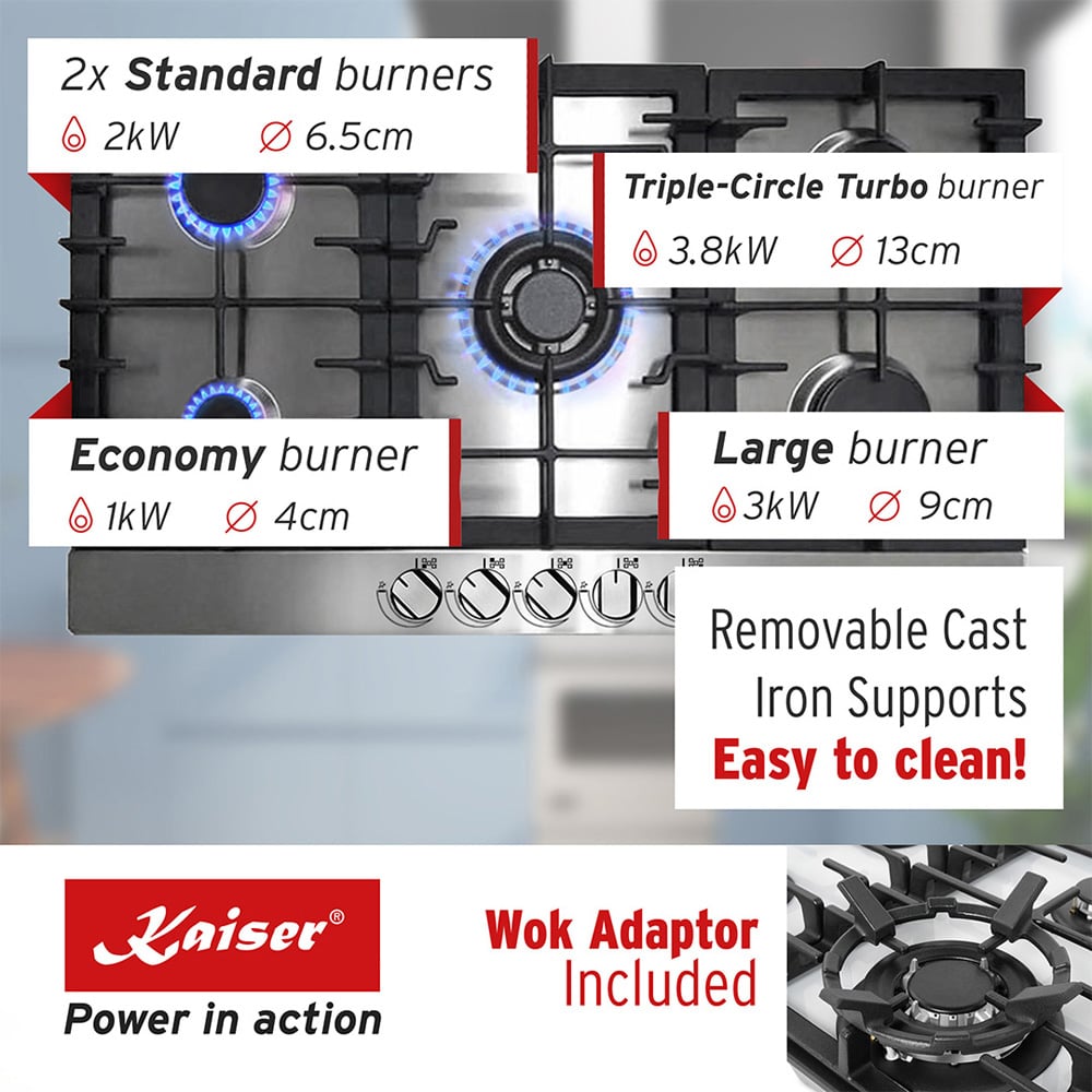 Kaiser Grand Chef Stainless Steel Gas Hob 86cm