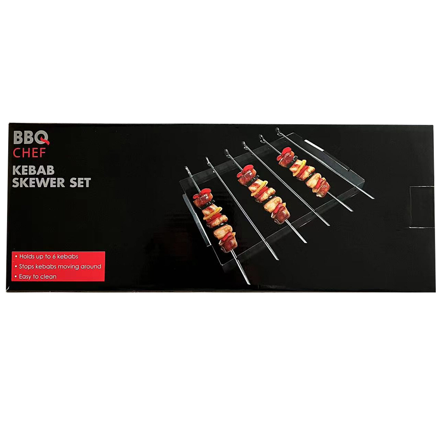 The Kebab Skewer Set is the perfect accessory for your next BBQ. The set holds up to six kebabs and stops them from moving around. The set is easy to clean and can be folded for simple storage after use. It's ideal for getting tasty, perfectly cooked shish kebabs.