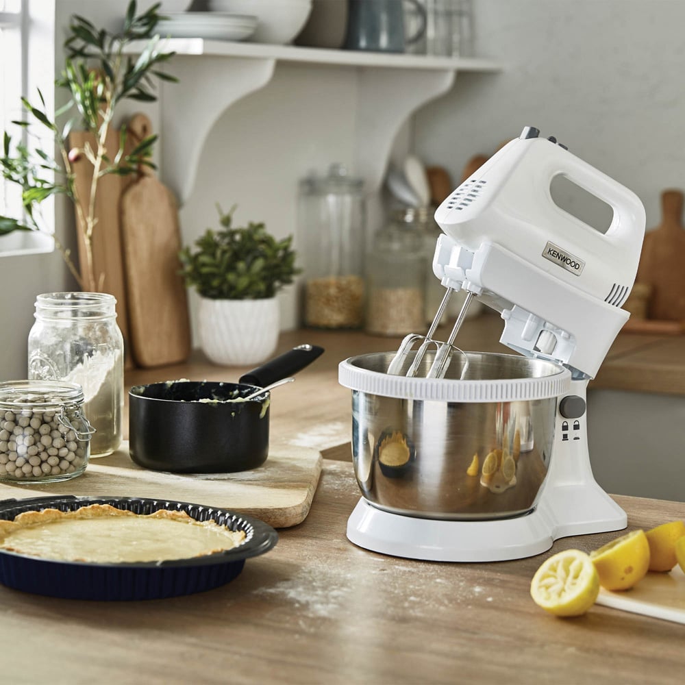 The Kenwood Chefette Lite HMP34.A0W 3L Hand Mixer with Rotating Bowl is reasonably priced, reliable and comes with great tech to help you get creative in the kitchen. So if you’re a busy lot who likes to bake delicious treats, this model will fit right in. Powered by a 450W motor, it makes light work of mixing, while the 3L bowl is perfect for larger quantities. With five speed settings, folding, mixing, and whisking are a breeze during food preparation. It includes stainless steel beaters, kneaders, a metal whisk, and metal dough hooks. Use it as a handheld mixer, or utilise the stand for extra convenience.