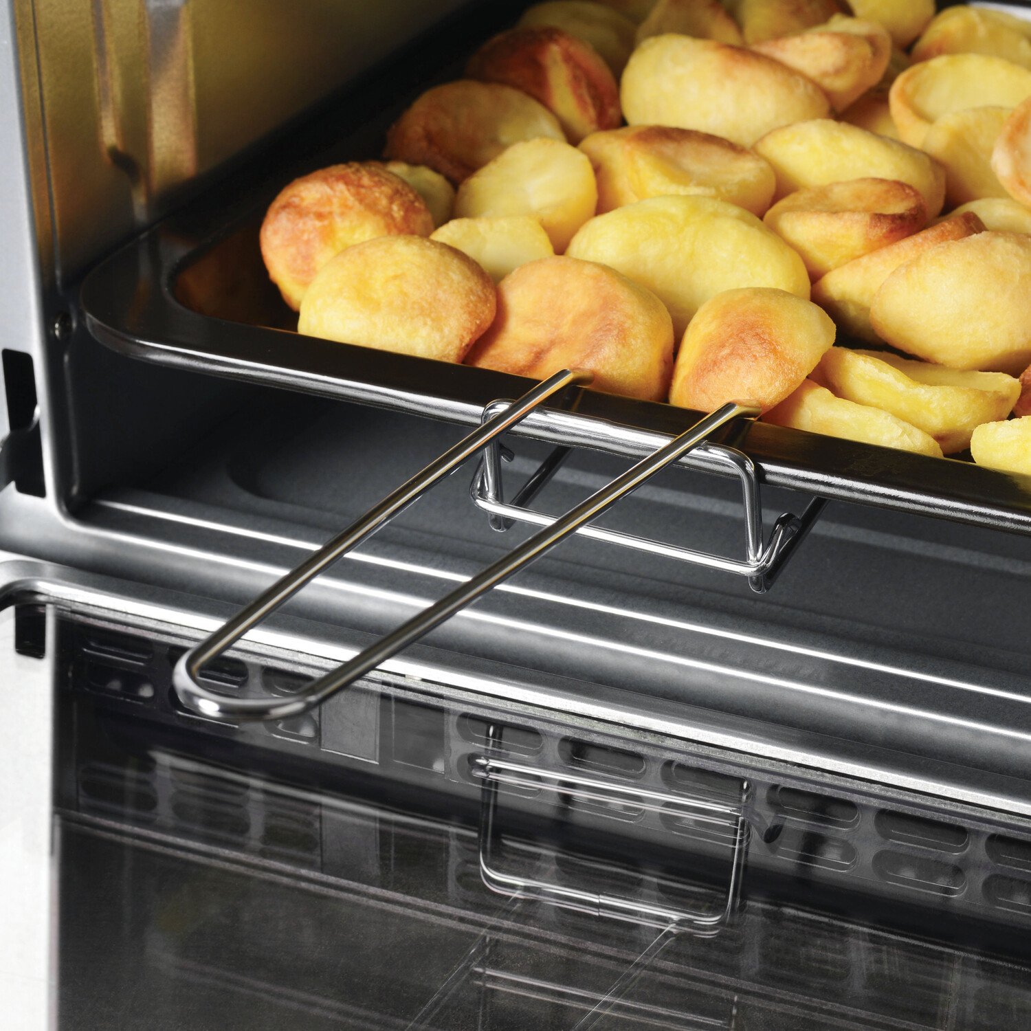 Ideal for smaller kitchens or anyone needing extra oven capacity, the Kitchen Master 35L Digital Mini Oven combines style and functionality. With its sleek design and modern finger-touch digital controls, this mini oven adds a touch of sophistication to your kitchen counter. The LED display features 12 pre-set smart cooking programmes, simplifying meal preparation. Finished in a classic black, it will sit neatly on your kitchen counter and coordinate effortlessly with your existing décor. Perfect for keen bakers, this handy oven also includes a rotisserie function and a ferment function. A must-have addition to any kitchen.