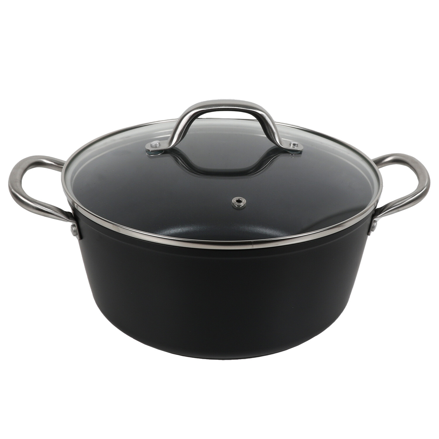 Upgrade your kitchen with the Kitchen Master Forged Aluminium Casserole Pan. Built for everyday use, its heavy-duty forged aluminium construction ensures lasting durability and superior heat conductivity and distribution for efficient cooking. The double layer, PFOA-free, non-stick coating makes cleaning a breeze, while its oven-safe design (up to 230°C) opens up a world of cooking possibilities. Compatible with all hob types, including induction, and complete with a tempered glass lid featuring a steam vent, this casserole pan is a real workhorse for busy kitchens.