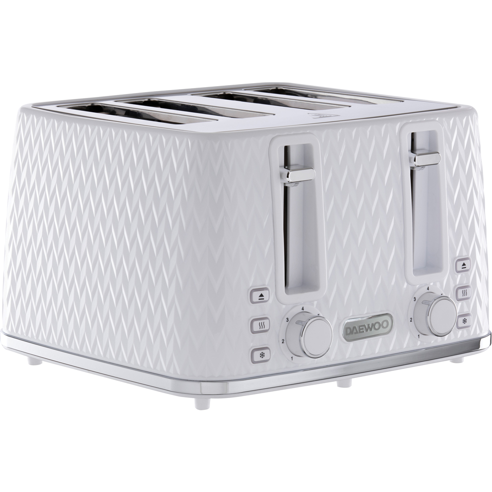 Daewoo Argyle White 4 Slice Patterned Toaster