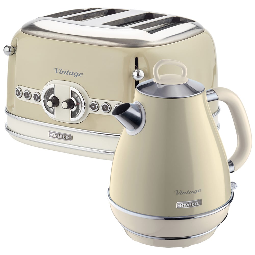 Ariete Vintage ARPK19 Cream 4 Slice Toaster and Jug Kettle Set