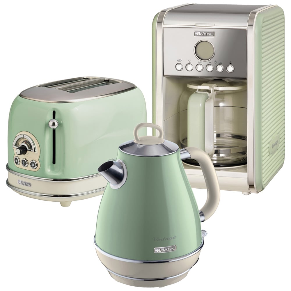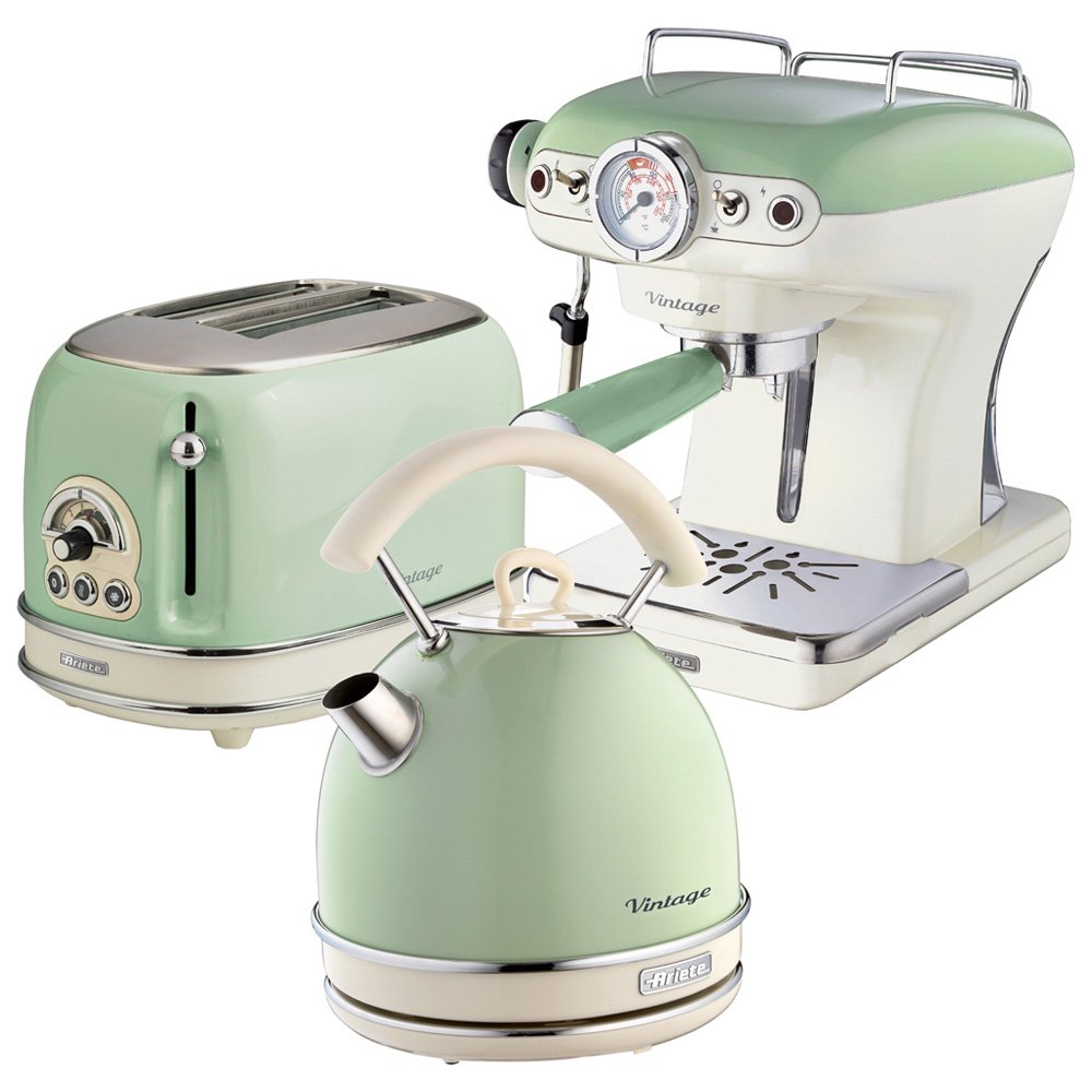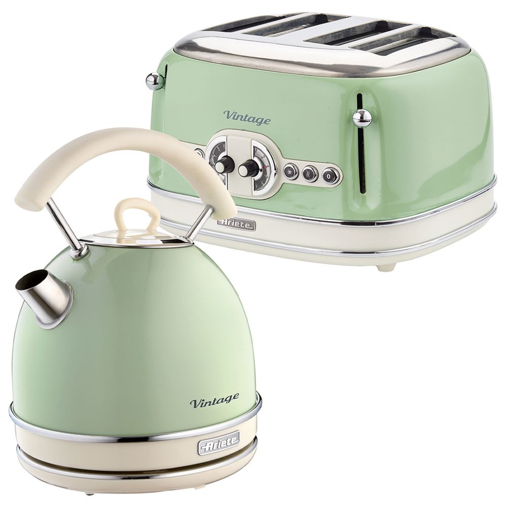 Ariete Vintage ARPK11 Green 2 Slice Toaster and Dome Kettle Set