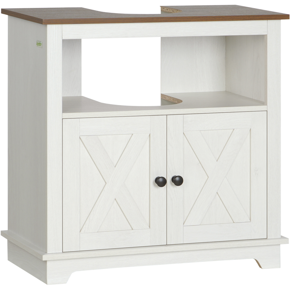 Add more storage space to your bathroom with this bathroom under-sink cabinet from Kleankin. The 'U' cut-out means it fits directly under a sink, a place which often gets left empty. Use that extra space to store daily hygiene products, cleaning supplies or towels. Featuring a farmhouse-style design, this undersink storage with a rustic look, which elevates your bathroom beautifully. This piece is made for practically every bathroom.
