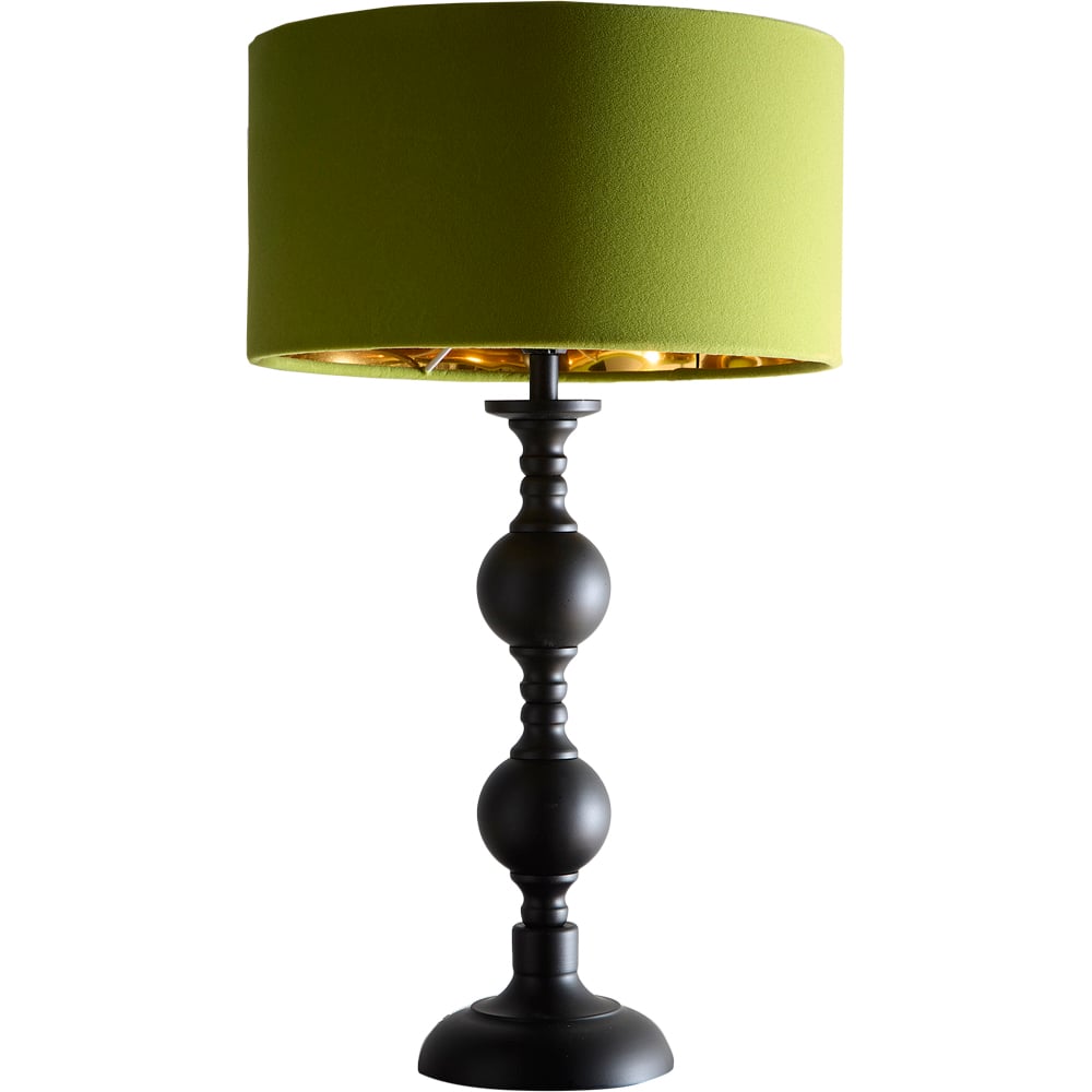 Kliving Churchgate Green Velvet Shade Black Metal Table Lamp