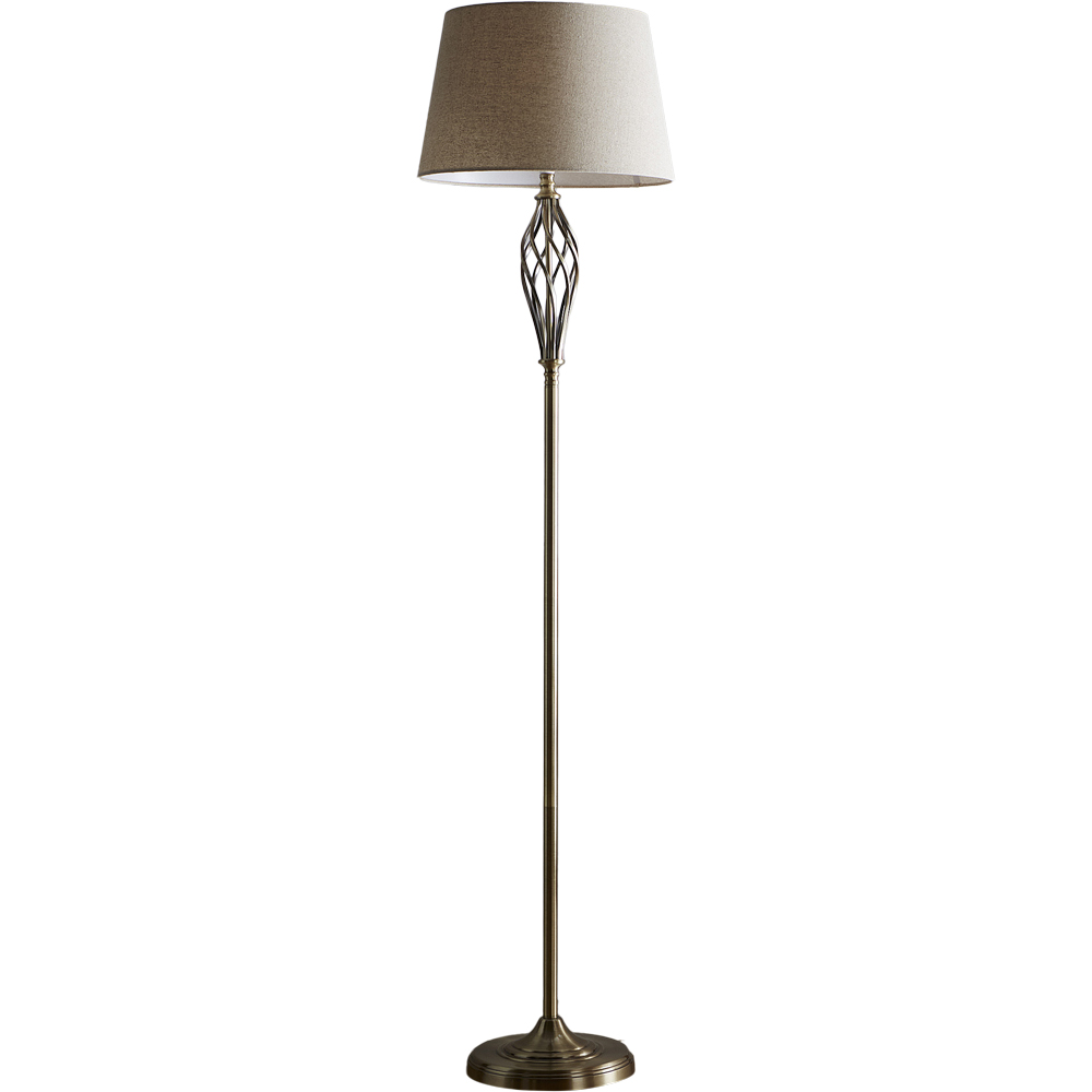 Kliving Compton Natural Linen Shade Antique Brass Floor Lamp