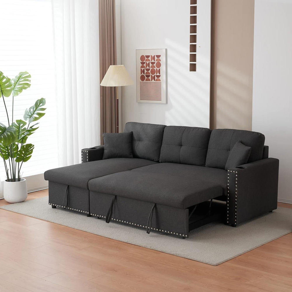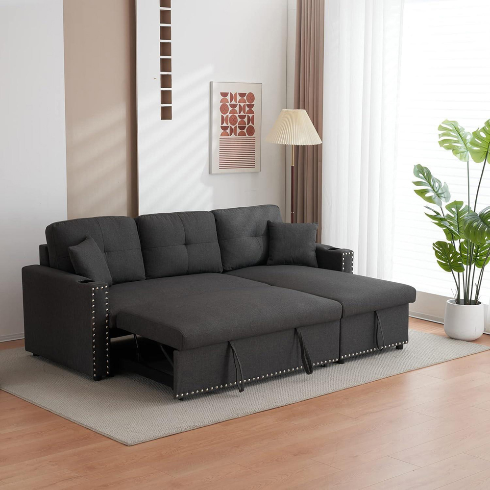 Kosy Koala 3 Seater Dark Grey Reversible Sectional Sofa Bed with Storage Chaise