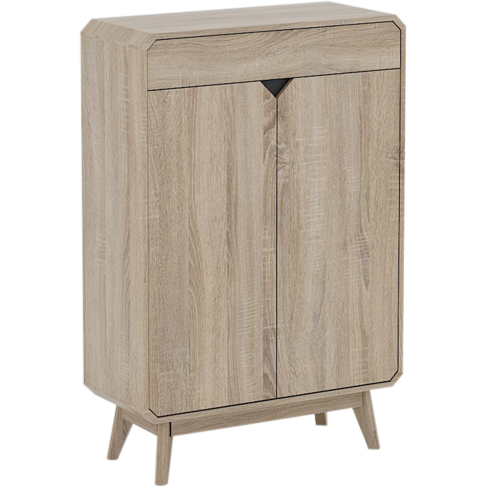 This stylish shoe cupboard, the BR15 SC1515, boasts a unique octagon-like design that's both modern and eye-catching. The top drawer is perfect for keys and papers, while the spacious cupboard below, with its easily removable shelves, offers flexible shoe storage. A light oak finish completes the look, blending contemporary style with a vintage feel.