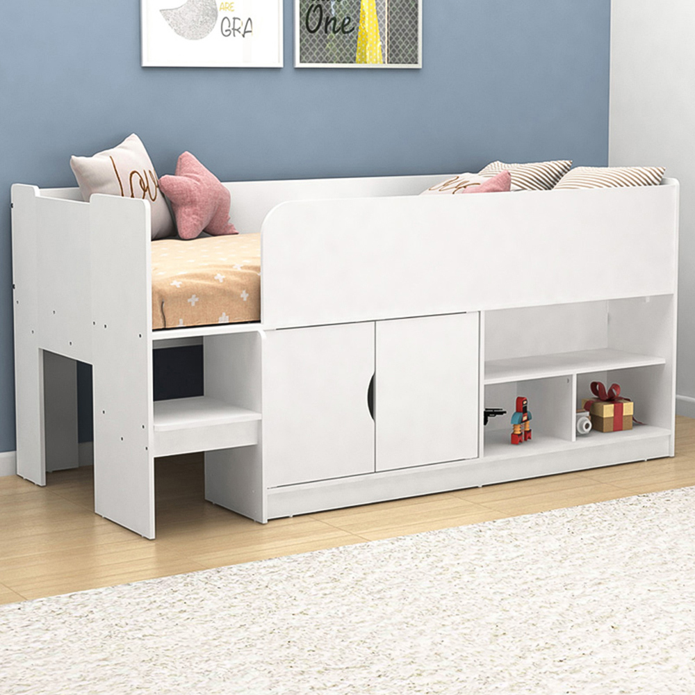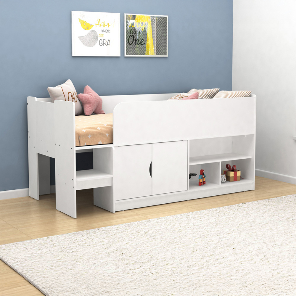 This Mid Sleeper cabin bed is ideal for children and teens. Its standard single bed dimensions mean it's as space-saving as a traditional bed, but with the added benefit of ample storage solutions; something every bedroom needs.