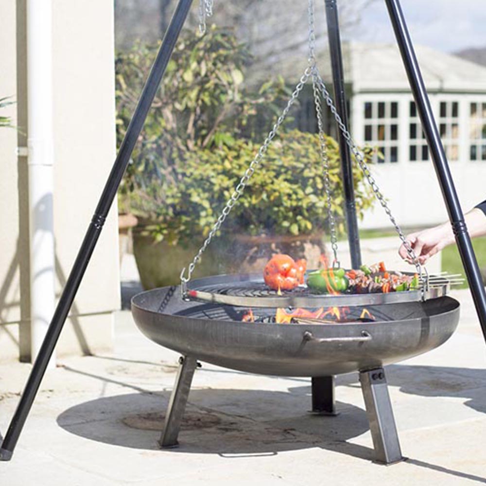 Transform your firepit into a BBQ haven with the versatile Tripod featuring a spacious hanging grill. The impressive chrome-plated cooking grill provides ample space, making it ideal for entertaining your culinary friends. With its adjustable grill height, you can achieve precise cooking, and it is compatible with many La Hacienda firepits. Keep your BBQ shielded from the elements with our premium range of BBQ covers.