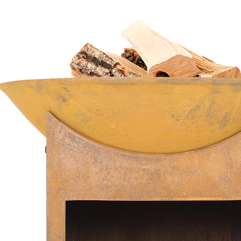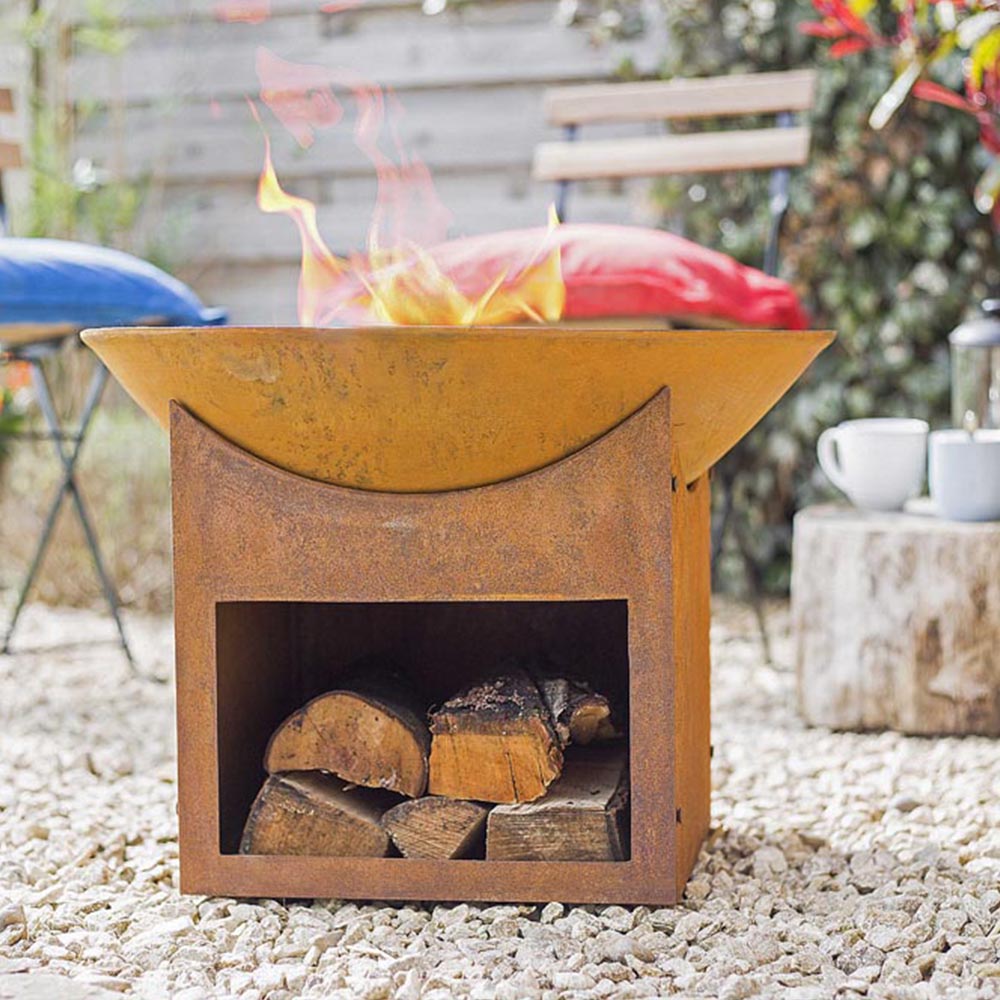 La Hacienda Fasa Oxidised Firepit with Log Store