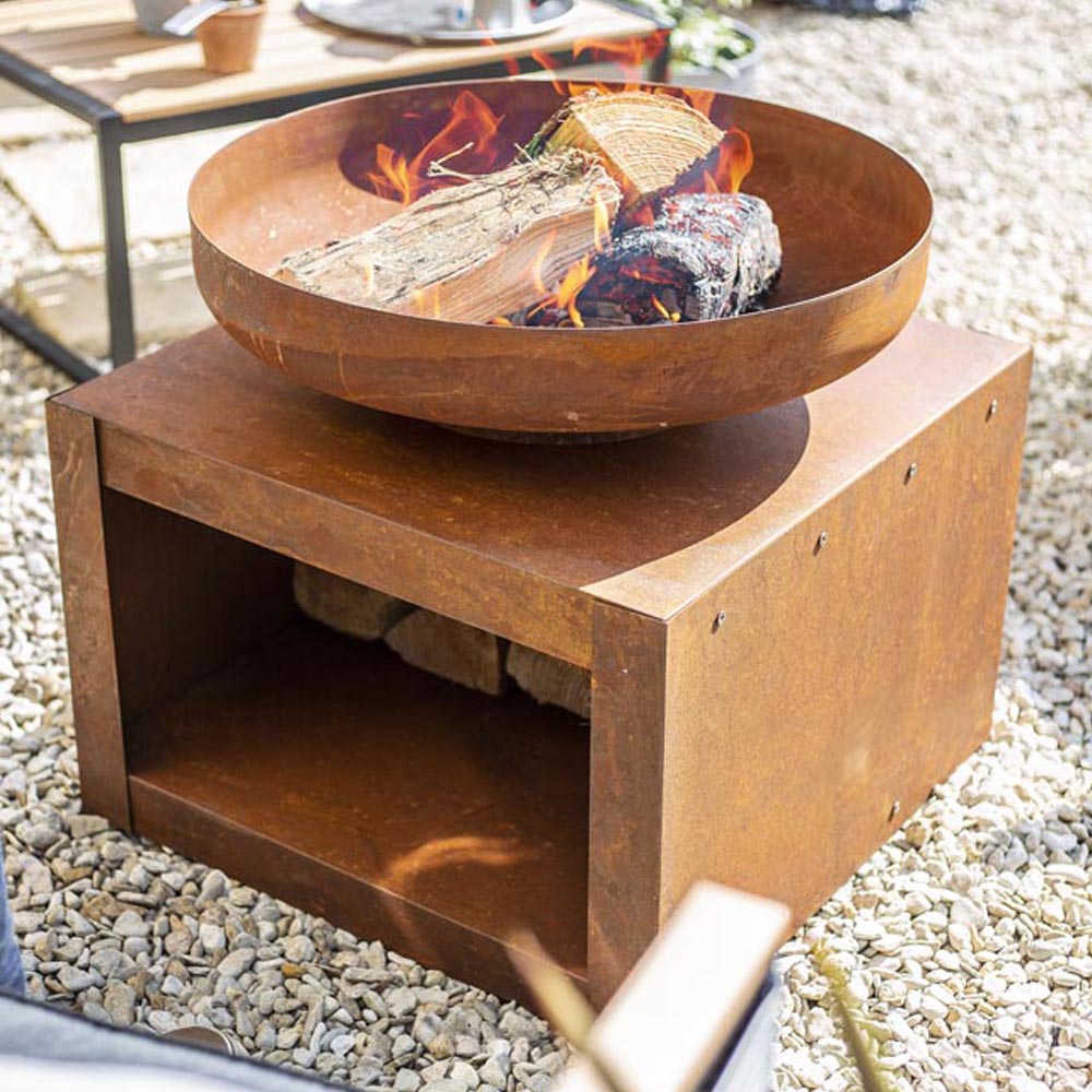 Elevate your outdoor experience with the Kuda Firepit from La Hacienda, a stunning blend of rustic charm and practicality. Constructed from durable steel, this firepit boasts a naturally oxidised rusty orange and brown finish that will impress your guests. Its minimalist design includes a spacious log store beneath, ensuring easy access to firewood while enhancing its overall aesthetic. Revel in the warmth and ambiance as the flames crackle and dance, visible from every angle thanks to the 360-degree view. Assembly is a breeze with the included instructions, allowing you to enjoy your firepit in no time. For optimal maintenance, remember to store it indoors during winter months or adverse weather conditions.
