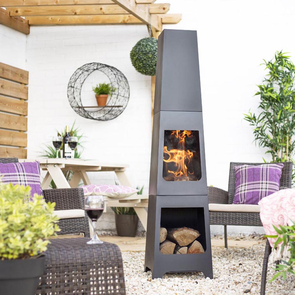 Elevate your outdoor area with the stylish Malmo modern chimenea from La Hacienda. With its contemporary and minimalistic design, this chiminea adds a touch of elegance to your garden while being constructed from robust steel for long-lasting durability. Enjoy the practicality of the integrated log store, ensuring you have easy access to firewood for your outdoor gatherings. Create a welcoming atmosphere and relish the warmth it provides on cool evenings spent under the night sky.