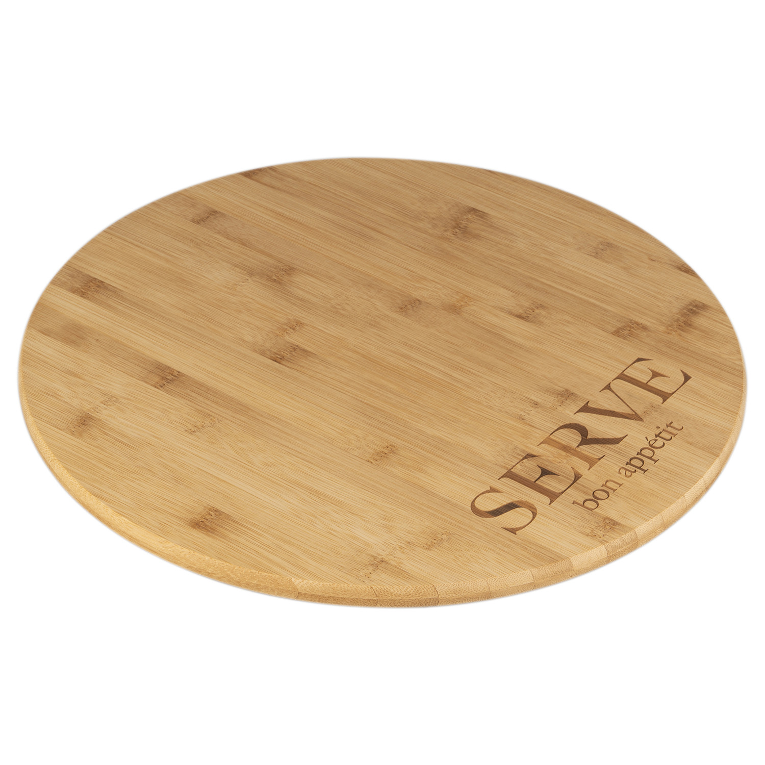 A practical and versatile addition to any dining table, this large bamboo Lazy Susan simplifies food service. Crafted from durable, eco-friendly bamboo that resists splitting and chipping, it features a subtly lasered "Serve" slogan. Simply hand wash with warm, soapy water after each use.