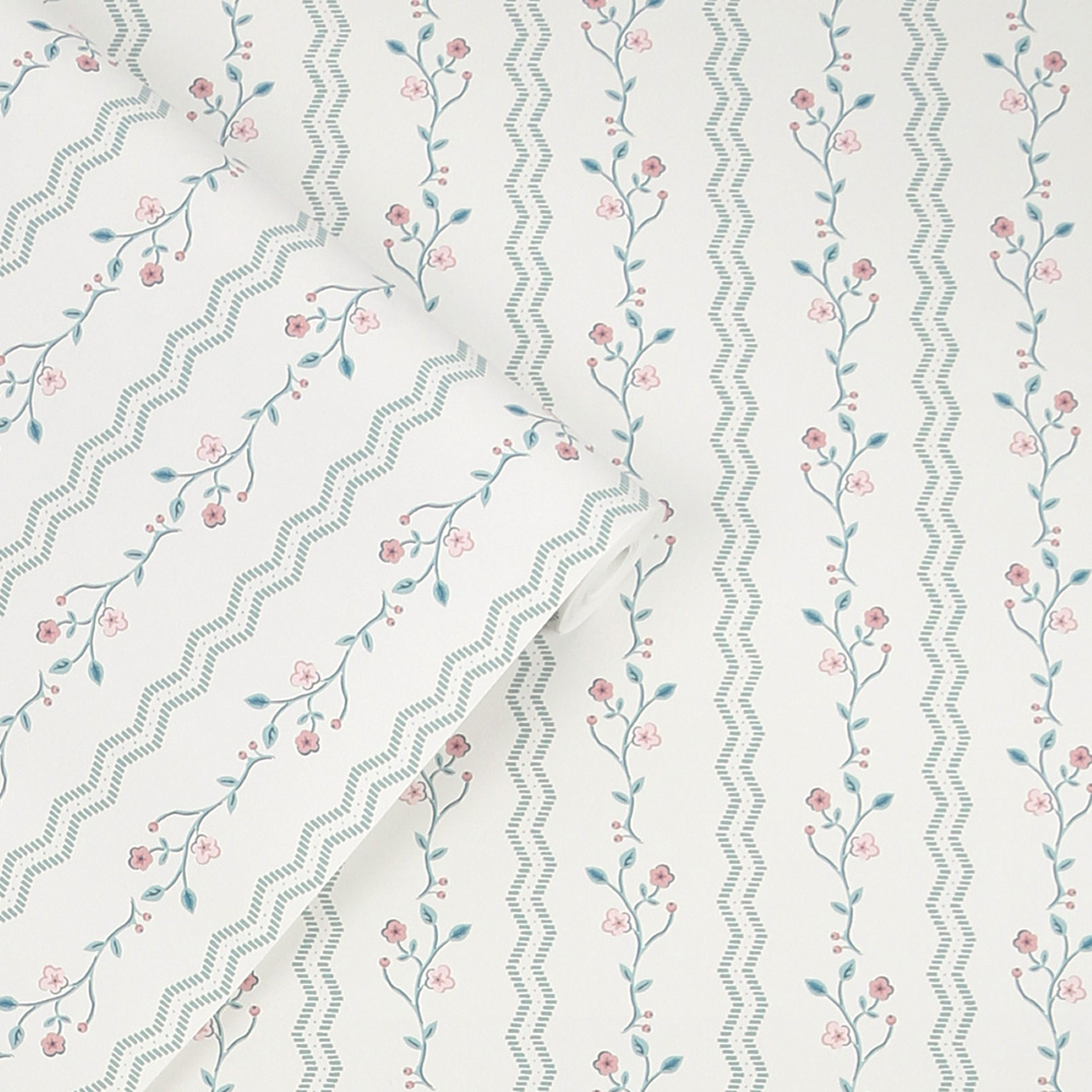Blencow Stripe wallpaper presents a charming vertical design, showcasing a delightful trail of carnations, potentilla flowers, and berries. A beautiful addition to any room.