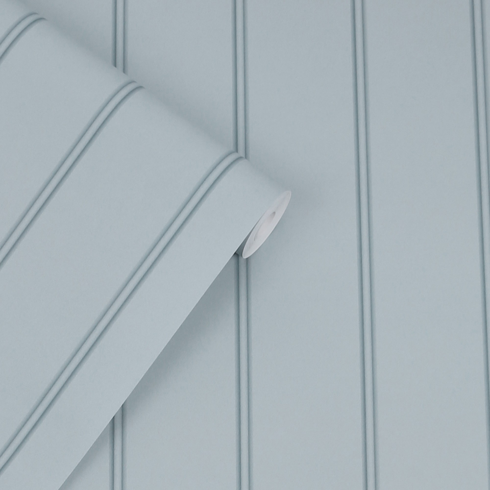 Laura Ashley Chalford Wood Panelling Seaspray Blue Wallpaper