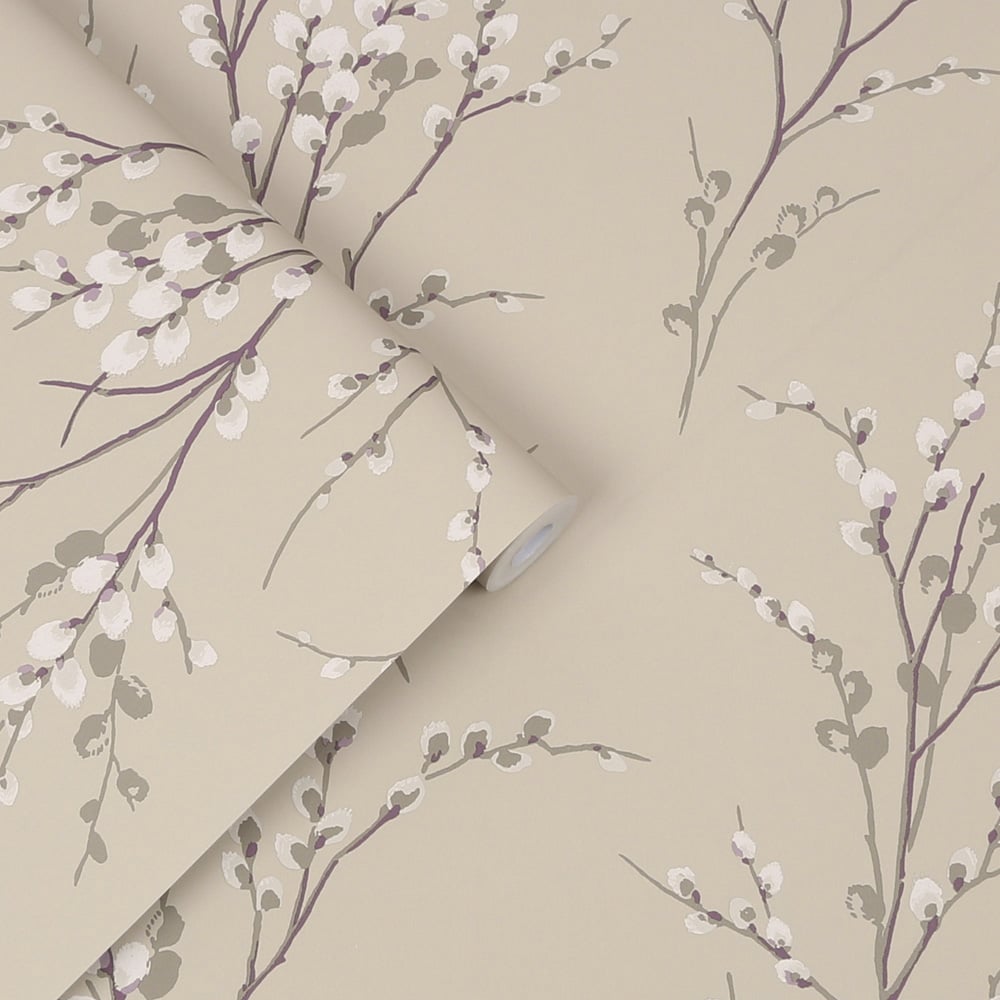 Embrace springtime elegance with this Pussy Willow sprig wallpaper, a classic Laura Ashley floral design in natural tones. This fresh and clean design evokes the feeling of early spring, bringing a touch of the outdoors in.