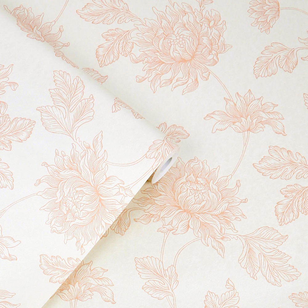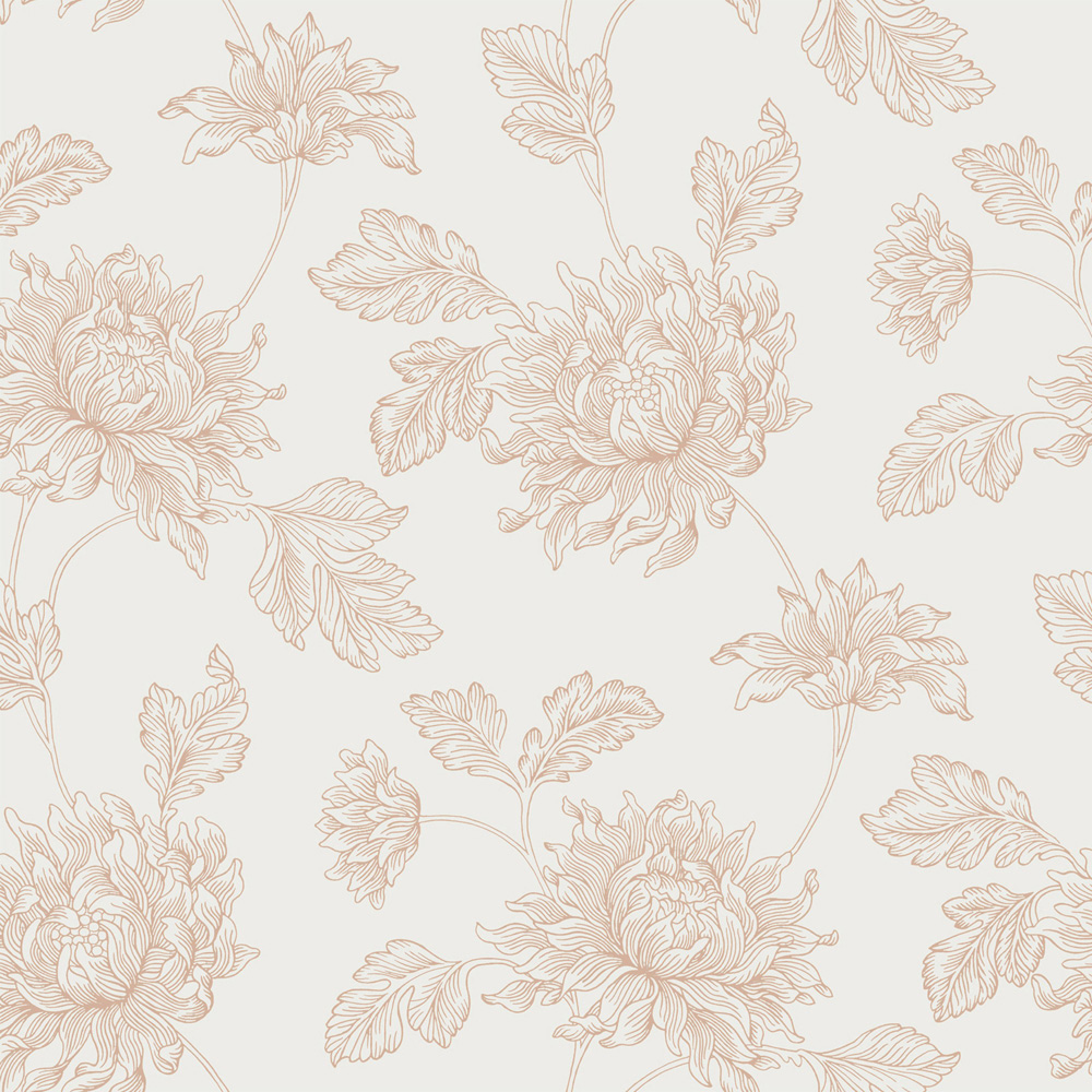 This romantic line drawn floral design was originally featured on fabric and wallpaper found in the Laura Ashley archive. The Stratton print features chrysanthemums on meandering stems with beautiful curling petals and leaves that climb the design. This design is printed on a mica fibrous paper with added mica sheen, bringing this beautiful design to life.