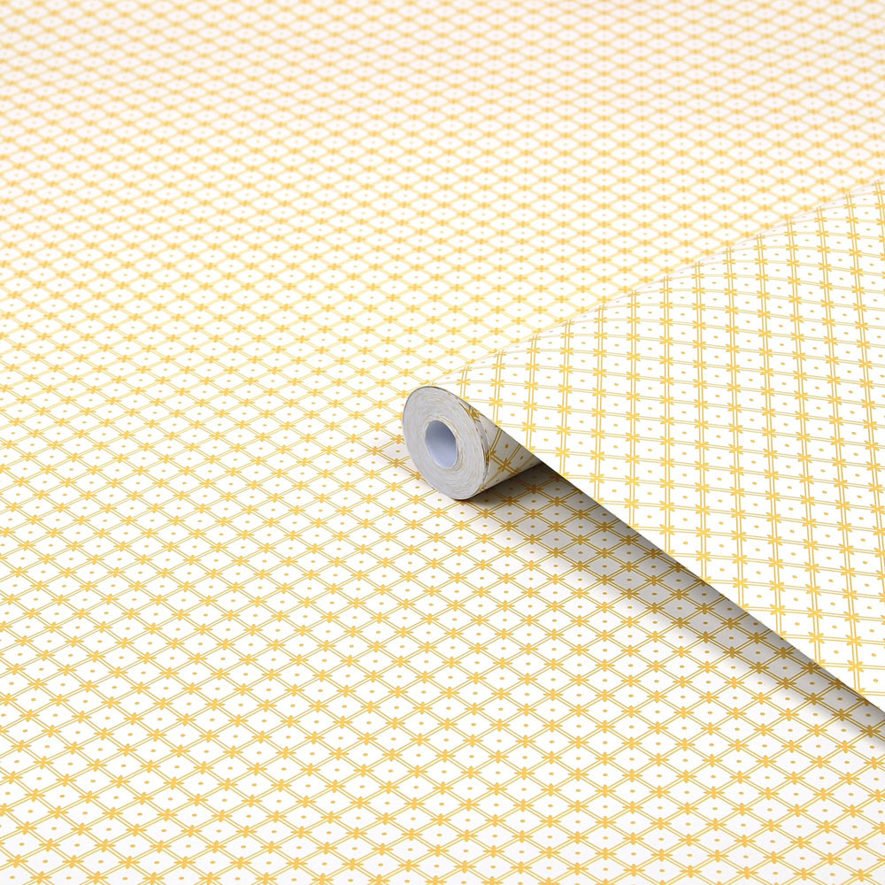 Timelessly elegant, Wickerwork is a small-scale geometric print, which features a double-lined lattice pattern joined by a cross shape, designed in complementing tones.