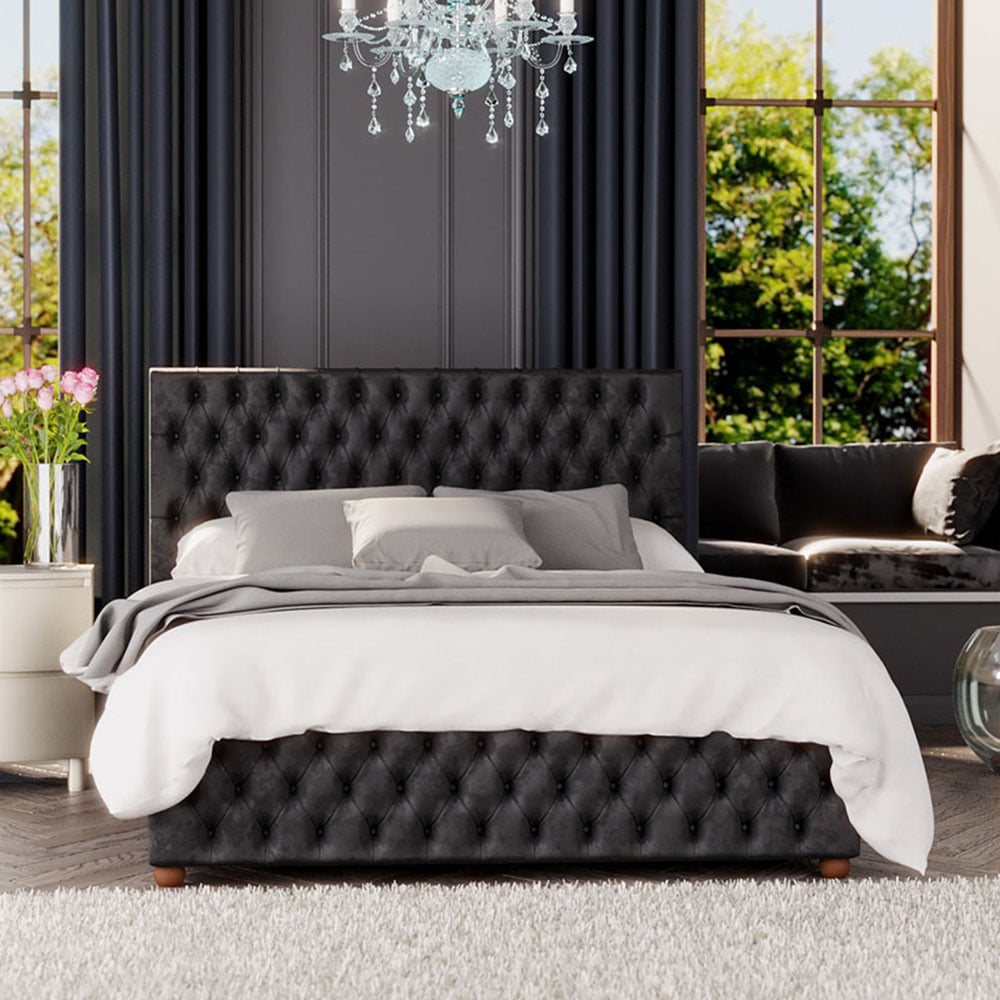 Laurence Llewelyn-Bowen Seren Super King Size Black Mirazzi Velvet Ottoman Bed