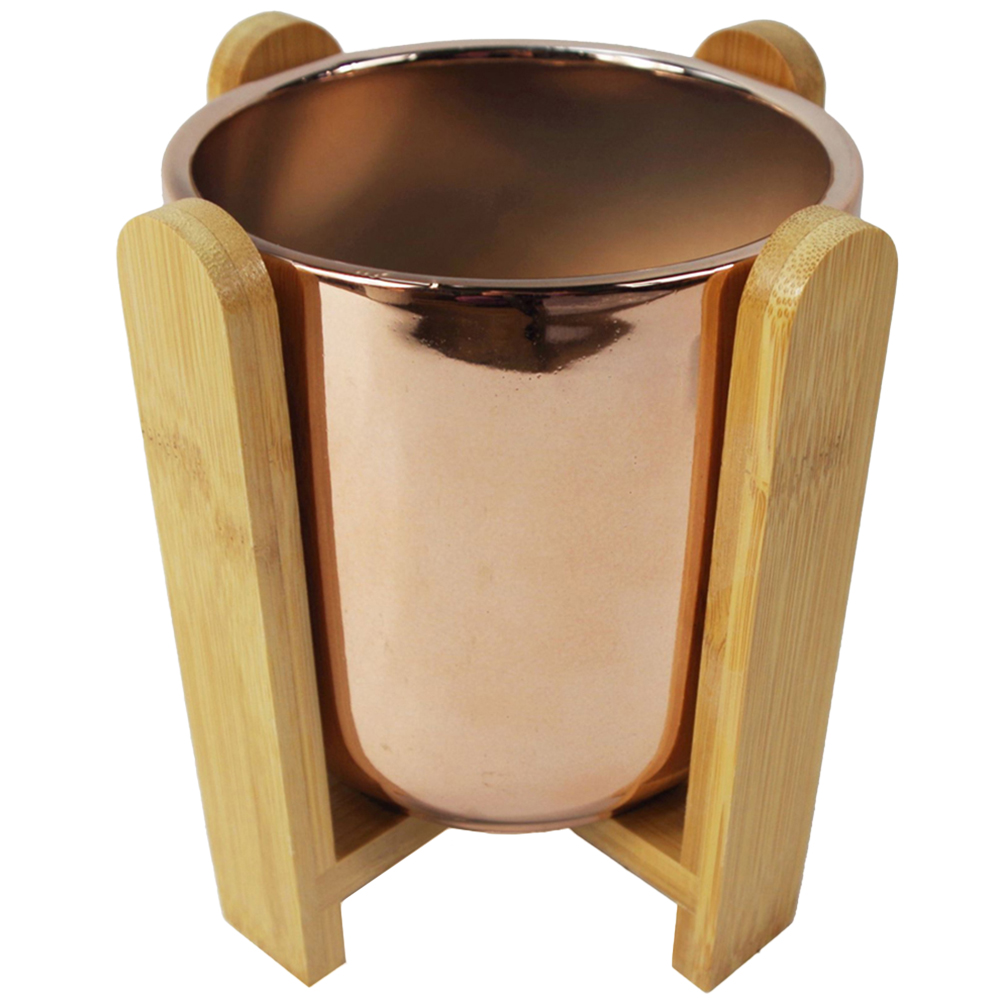 Leaf Gold Ceramic Planter with Bamboo Stand