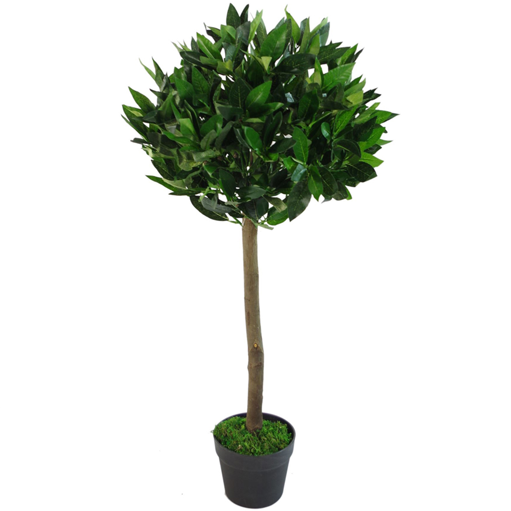Leaf Laurel Ball Topiary Bay Plain Natural Trunk Artificial Tree in Pot 90cm