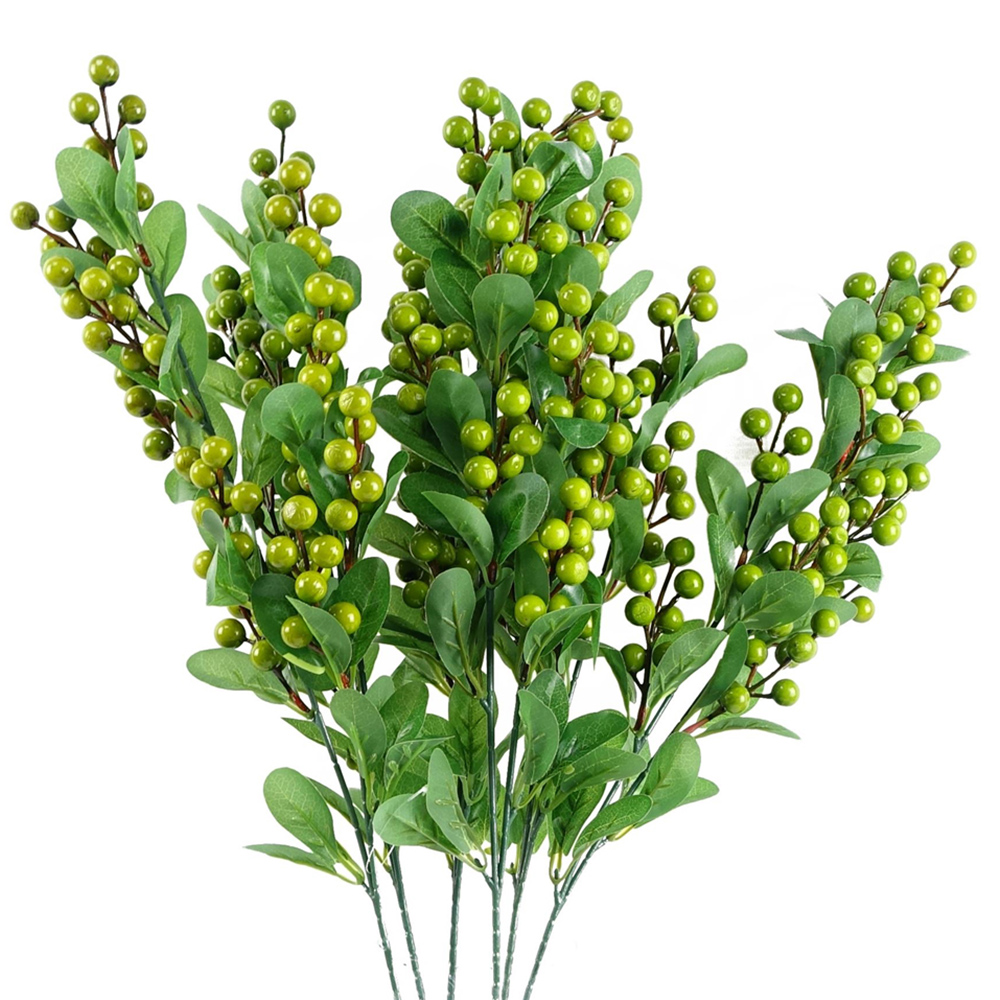 Introduce a touch of verdant charm with our set of six Green Berry Stems, each adorned with lifelike plastic leaves. Ideal for crafting bespoke floral arrangements alongside our other artificial blooms, or simply displayed as standalone decorations. Each stem extends to an overall height of 70cm, with dimensions of 10cm x 10cm. Should you require a shorter length, these stems can be easily trimmed with wire cutters. Please note: Vases depicted in our imagery are for illustrative purposes only and are not included with the berry stems.