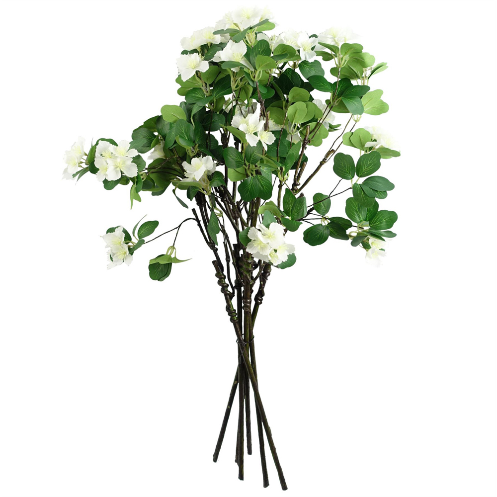 Craft stunning floral displays with these lifelike foliage stems, featuring delicate silk flowers and poseable wired stems. The leaves, also crafted from silk, add to the realistic appeal. Each stem measures 60cm in overall height and 15cm in width, offering versatility for various decorative applications. Easily create bespoke arrangements by combining these stems with our other artificial flowers, or use them individually for simple yet elegant decorations. Should you need a shorter length, the stems can be effortlessly trimmed with wire cutters. Please note that while some images showcase vases to inspire arrangement ideas, vases and planters are not included with the foliage.