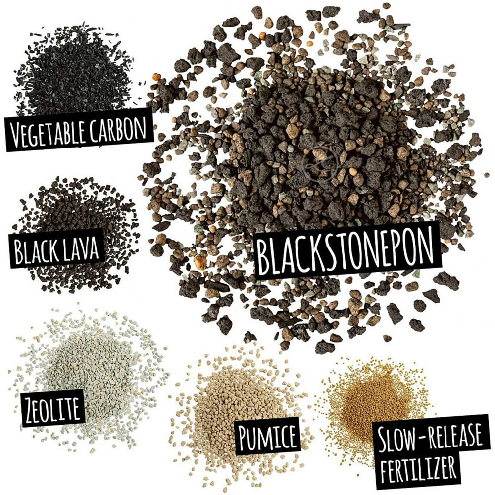 Elevate your indoor plants with Lechuza Blackstonepon Prefertilized Indoor Plant Compost. This peat-free blend, in a convenient 2-pack of 18L containers, provides the perfect growing environment. Its unique mineral substrate, featuring charcoal and black lava, offers exceptional drainage and water retention thanks to pumice, lava, zeolite, and charcoal. This ensures consistent moisture and aeration for robust root development and unparalleled support for root aeration. Pre-fertilized for 6-8 months, it delivers essential nutrients right from the start. The dark, elegant colour adds a decorative touch to your indoor space, whether used for complete planting or as a stylish decorative element. This sustainable, high-performing compost supports healthy growth and is ideal for all indoor plants.