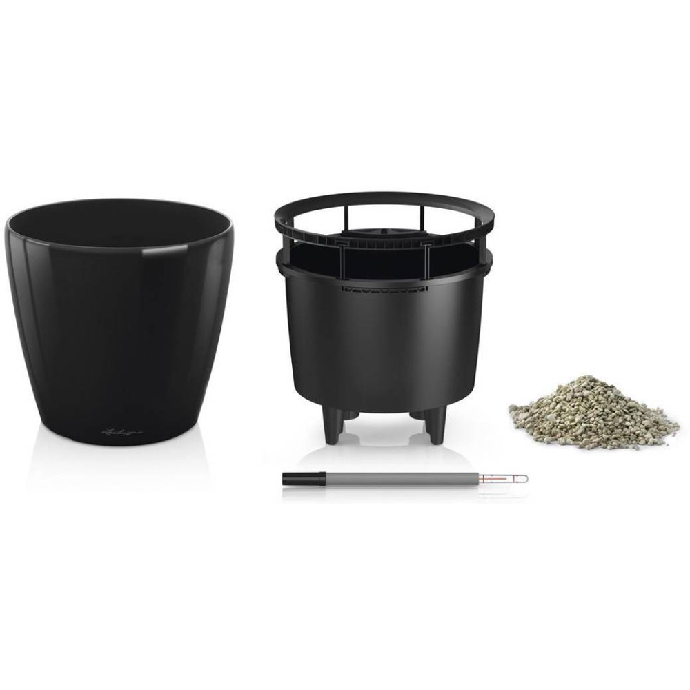 Elevate your garden with the Lechuza Classico 35 LS – a self-watering planter designed for effortless elegance. Crafted from durable, long-lasting German plastic, this charcoal matte planter (33cm high) offers a contemporary touch to any setting. Its intelligent sub-irrigation system keeps plants thriving for 2-12 weeks (depending on size) with a convenient water level indicator. A drain plug prevents overwatering, while the included inner and outer pots complete the stylish design. For optimal results, top water for the first 10-12 weeks to help your plant adjust. Afterwards, simply refill the reservoir as needed. Note: internal dimensions exclude the self-watering system, slightly reducing planting space. This planter is freeze-proof, fade-proof, and impact-resistant, ensuring lasting beauty.