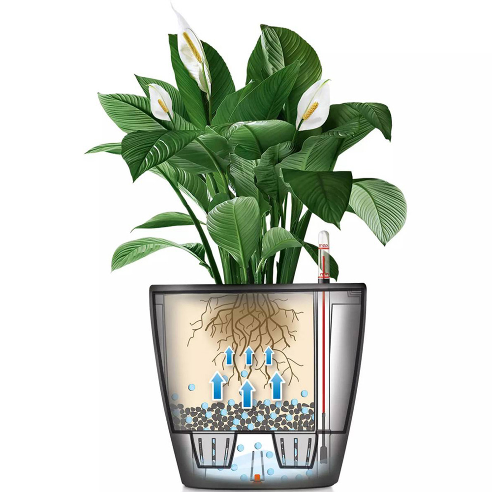 Elevate your indoor or outdoor space with this pair of sleek, white Lechuza Classico self-watering planters. Crafted from durable, UV and frost-resistant polyresin, these 21cm pots offer a modern aesthetic perfect for patios, porches, or poolside settings. Each planter includes a generous water reservoir with a convenient level indicator and a drainage hole, minimizing frequent watering. The integrated drainage plug ensures easy maintenance. A high-quality mineral substrate with fertilizer is also included, providing your plants with essential nutrients for 2 to 12 weeks (depending on plant size). For optimal results, water your plants regularly during the first 10-12 weeks to acclimate them to their new home. After this period, simply refill the reservoir as needed. Note: The self-watering system reduces the overall planting space, internal measurements reflect the space available *excluding* the system.