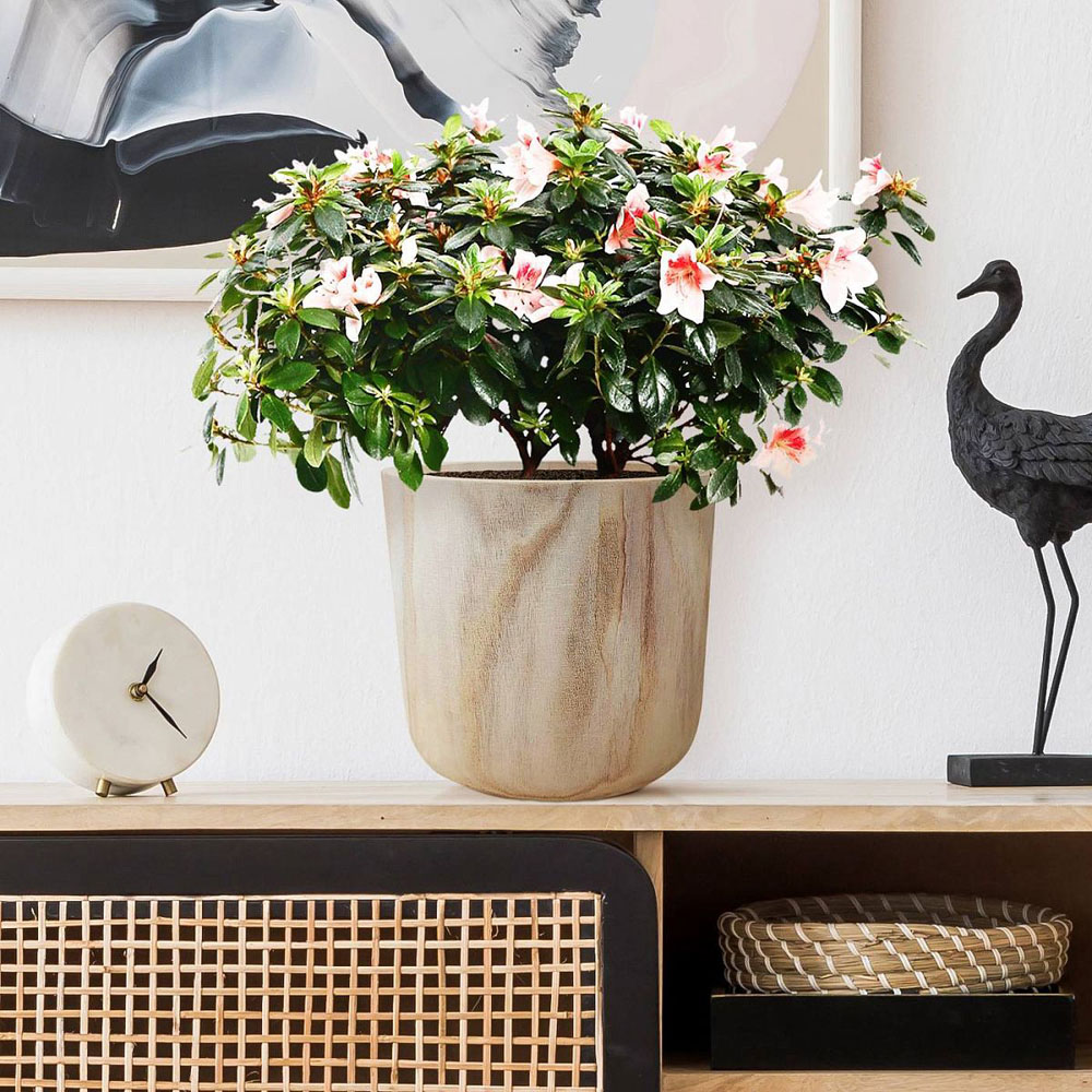 LECHUZA Hortico Craft Wooden Round Indoor Plant Pot 24 x 27cm 2 Pack