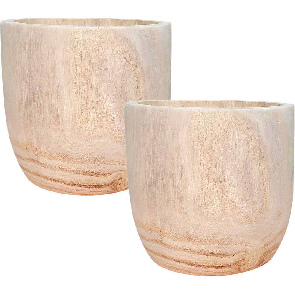 LECHUZA Hortico Radial Wooden Round Indoor Plant Pot 24 x 26cm 2 Pack