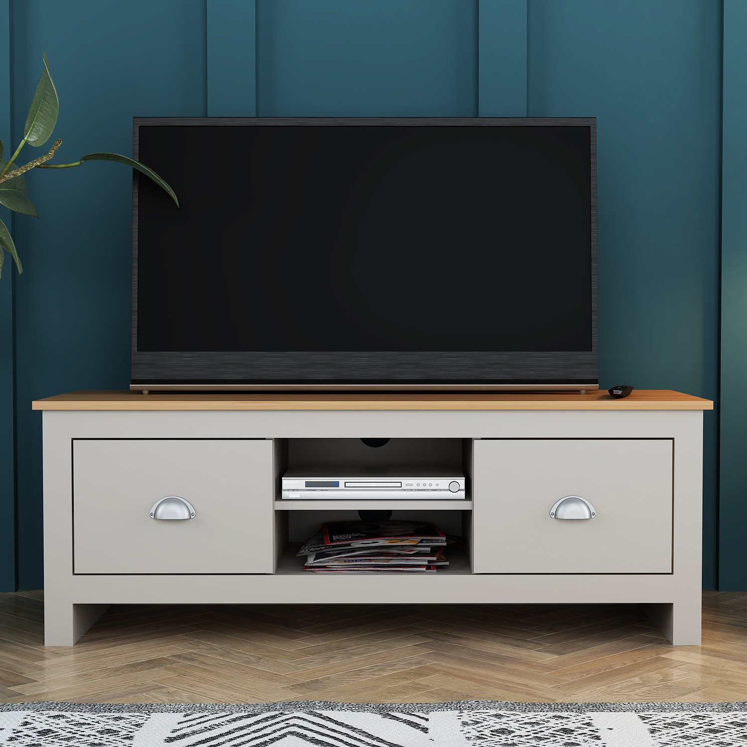 Lexington 2 Drawer 2 Shelf Grey and Oak TV Unit