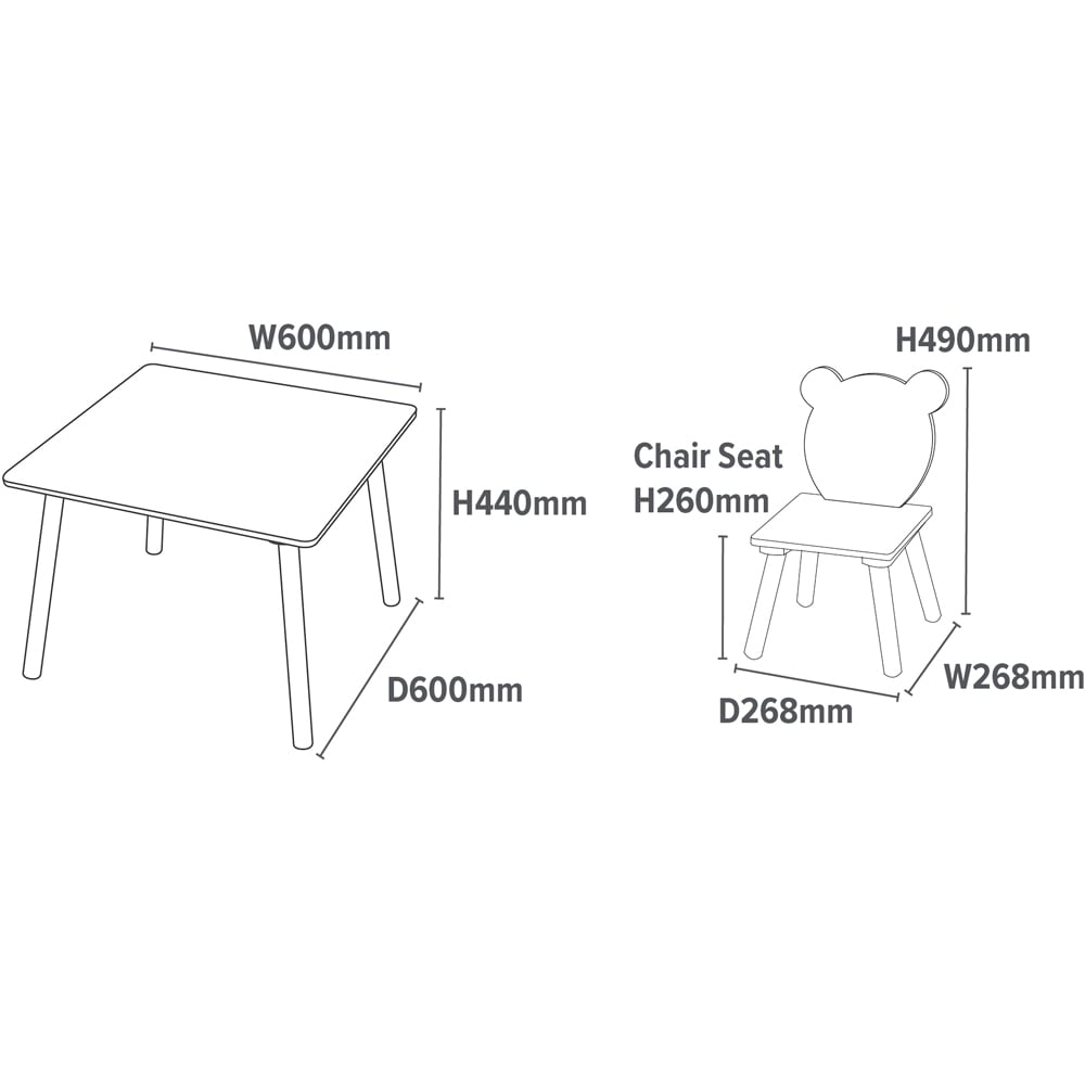 Create a dedicated play space for your child with this charming Bear Table and Chair Set. Perfect for drawing, writing, playing, or enjoying meals, this sturdy set features solid pine wood legs for lasting durability. Ideal as a first table for toddlers transitioning from a highchair, its cute and unique design makes it a delightful addition to any home and a wonderful gift.
